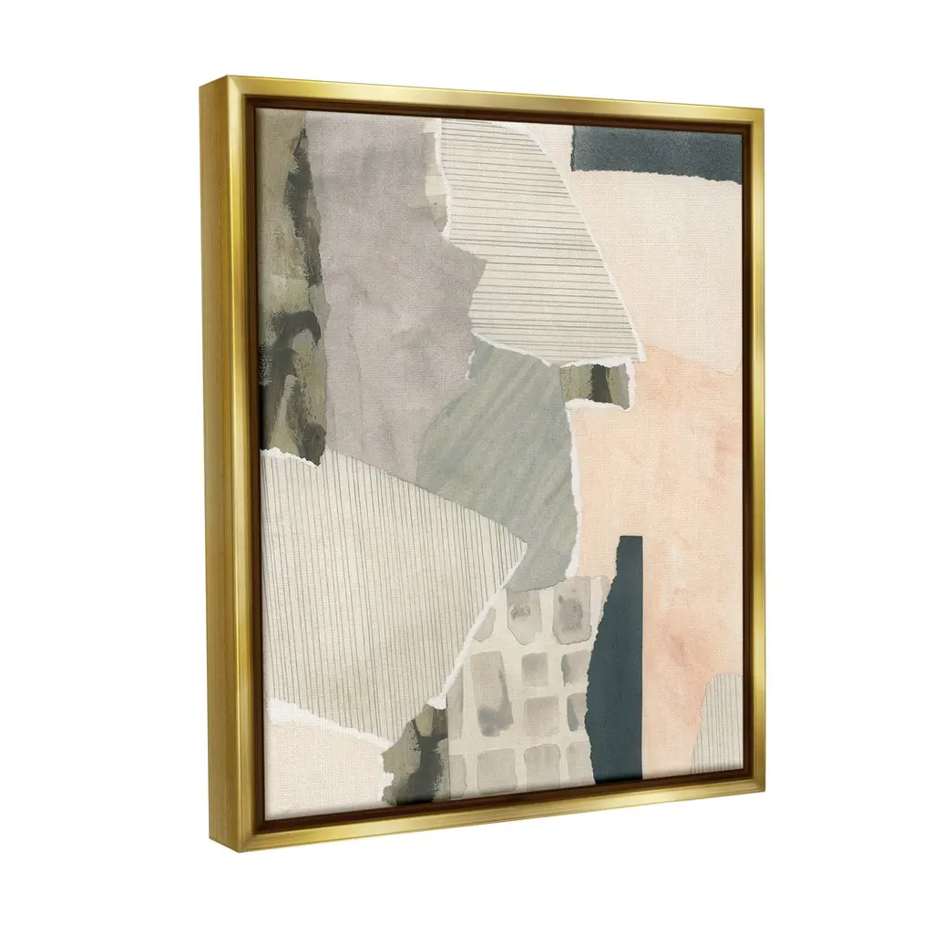 Stupell Asymmetric Neutral Patterns Framed Floater Canvas Wall Art Design By June Erica Vess - 25 X 31 - Gold
