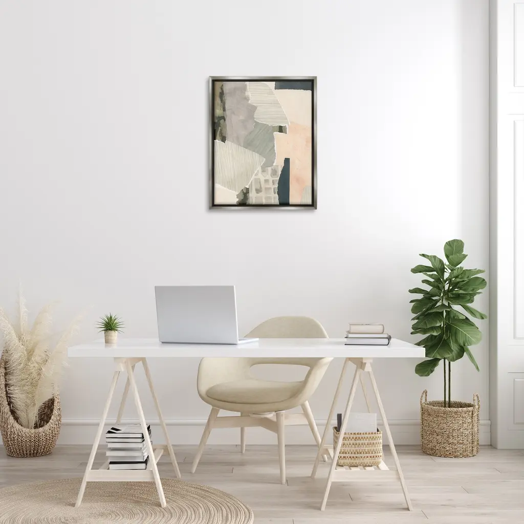 Stupell Asymmetric Neutral Patterns Framed Floater Canvas Wall Art Design By June Erica Vess - 25 X 31 - Grey