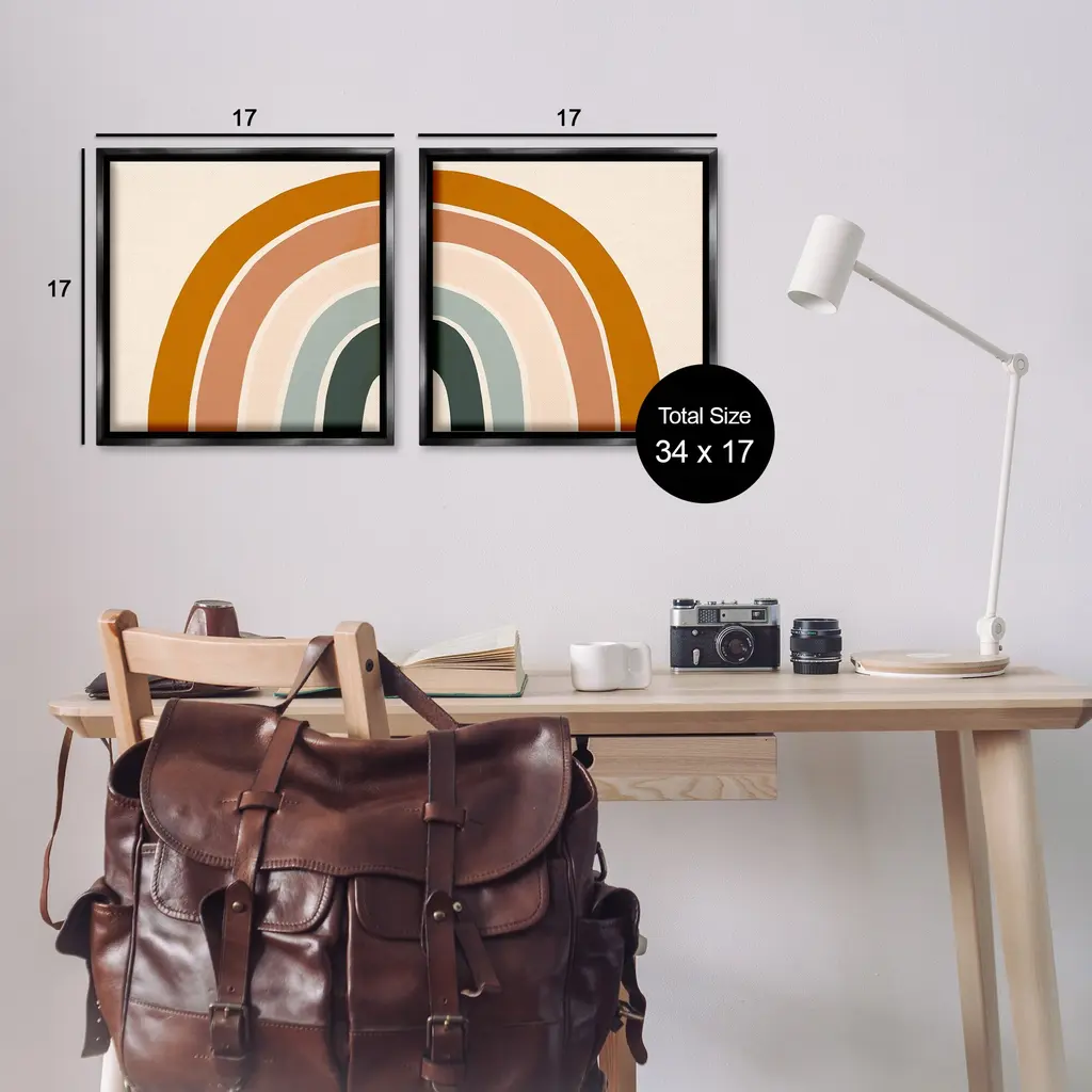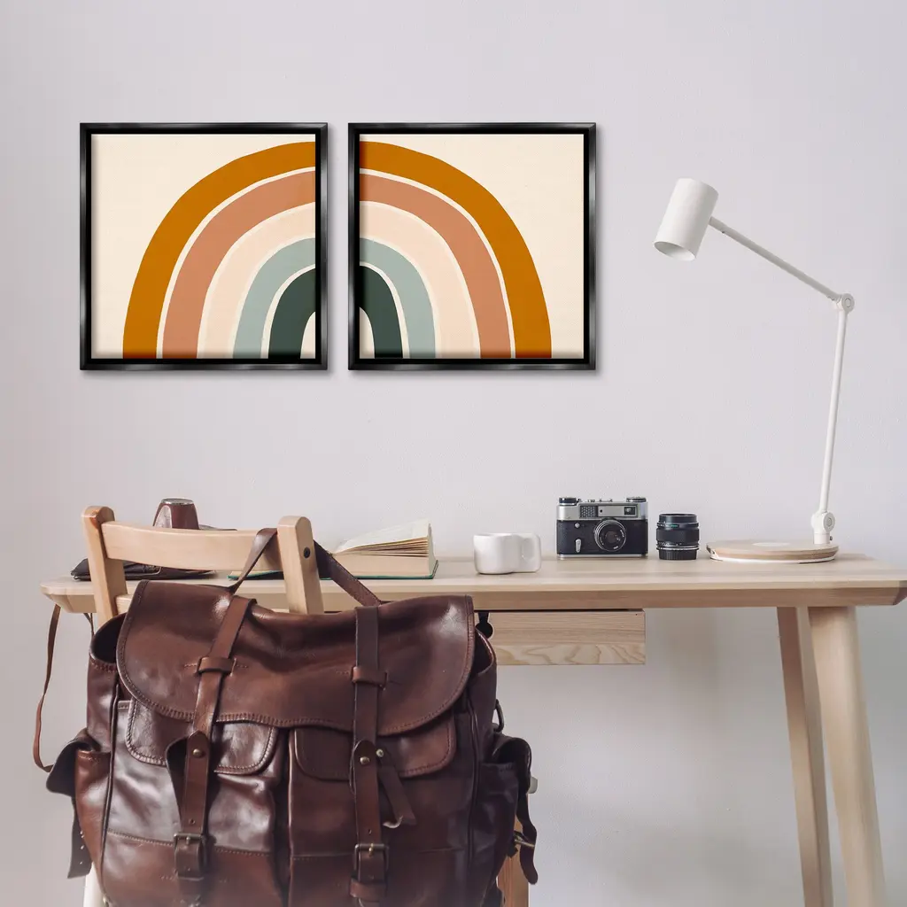 Elevate your home or office to the next level with Stupell Framed Floating Canvas Wall Art. Our premium hand-stretched canvas is mounted securely into a sturdy lightweight frame. The museum-style gap between the wrapped canvas and the box frame gives the illusion of floating artwork. Stupell Wall Art is made in the USA.Features: Dimensions: 2 Piece Set, Each Frame is 18 x 1.7 x 18Two Piece Floating Frame Canvas Products are available as 18"x18" or 25"x25" Panels. All Floating Frame Canvas Products have a 1.7" Depth.Wall Art is Ready to Hang with Hardware Free Hanging. No Installation required. For Easy Set Up Lean or Layer Artwork on Shelf or Against Wall. Artwork is Permently Fixed into the Frame.Our elevated 1.7" Thick Floating Frame is the perfect complement to our canvas style Wall Art. We use only the highest quality inks in house with industry leading printing solutions. Canvas is hand stretched over a durable wood foundation and then mounted securly into a Modern Box Frame. Made in the USA.Artwork Relates To: Boho, Rainbow, Neutral, Stripes, Pattern, NatureDesign by Victoria Borges