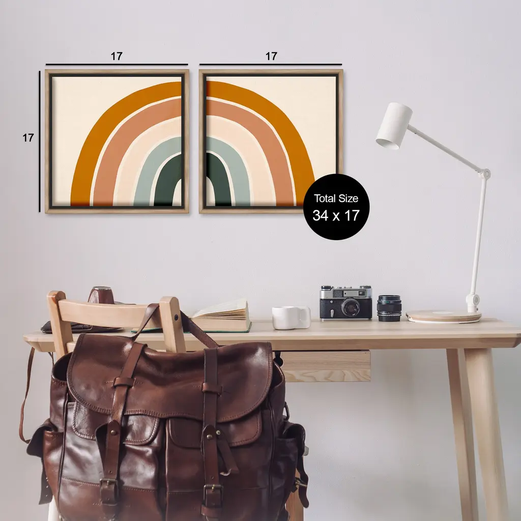 Elevate your home or office to the next level with Stupell Framed Floating Canvas Wall Art. Our premium hand-stretched canvas is mounted securely into a sturdy lightweight frame. The museum-style gap between the wrapped canvas and the box frame gives the illusion of floating artwork. Stupell Wall Art is made in the USA.Features: Dimensions: 2 Piece Set, Each Frame is 18 x 1.7 x 18Two Piece Floating Frame Canvas Products are available as 18"x18" or 25"x25" Panels. All Floating Frame Canvas Products have a 1.7" Depth.Wall Art is Ready to Hang with Hardware Free Hanging. No Installation required. For Easy Set Up Lean or Layer Artwork on Shelf or Against Wall. Artwork is Permently Fixed into the Frame.Our elevated 1.7" Thick Floating Frame is the perfect complement to our canvas style Wall Art. We use only the highest quality inks in house with industry leading printing solutions. Canvas is hand stretched over a durable wood foundation and then mounted securly into a Modern Box Frame. Made in the USA.Artwork Relates To: Boho, Rainbow, Neutral, Stripes, Pattern, NatureDesign by Victoria Borges