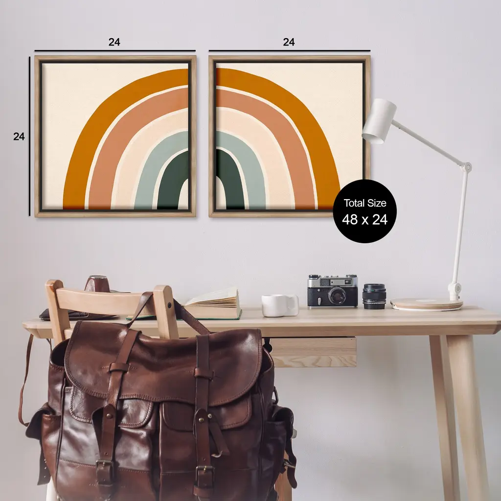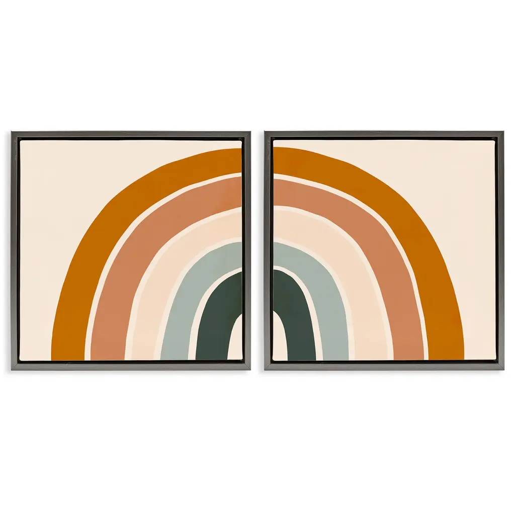 Elevate your home or office to the next level with Stupell Framed Floating Canvas Wall Art. Our premium hand-stretched canvas is mounted securely into a sturdy lightweight frame. The museum-style gap between the wrapped canvas and the box frame gives the illusion of floating artwork. Stupell Wall Art is made in the USA.Features: Dimensions: 2 Piece Set, Each Frame is 18 x 1.7 x 18Two Piece Floating Frame Canvas Products are available as 18"x18" or 25"x25" Panels. All Floating Frame Canvas Products have a 1.7" Depth.Wall Art is Ready to Hang with Hardware Free Hanging. No Installation required. For Easy Set Up Lean or Layer Artwork on Shelf or Against Wall. Artwork is Permently Fixed into the Frame.Our elevated 1.7" Thick Floating Frame is the perfect complement to our canvas style Wall Art. We use only the highest quality inks in house with industry leading printing solutions. Canvas is hand stretched over a durable wood foundation and then mounted securly into a Modern Box Frame. Made in the USA.Artwork Relates To: Boho, Rainbow, Neutral, Stripes, Pattern, NatureDesign by Victoria Borges
