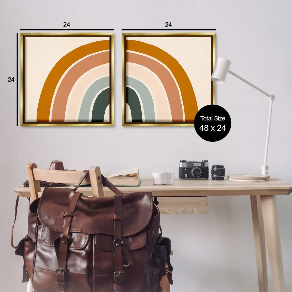Elevate your home or office to the next level with Stupell Framed Floating Canvas Wall Art. Our premium hand-stretched canvas is mounted securely into a sturdy lightweight frame. The museum-style gap between the wrapped canvas and the box frame gives the illusion of floating artwork. Stupell Wall Art is made in the USA.Features: Dimensions: 2 Piece Set, Each Frame is 18 x 1.7 x 18Two Piece Floating Frame Canvas Products are available as 18"x18" or 25"x25" Panels. All Floating Frame Canvas Products have a 1.7" Depth.Wall Art is Ready to Hang with Hardware Free Hanging. No Installation required. For Easy Set Up Lean or Layer Artwork on Shelf or Against Wall. Artwork is Permently Fixed into the Frame.Our elevated 1.7" Thick Floating Frame is the perfect complement to our canvas style Wall Art. We use only the highest quality inks in house with industry leading printing solutions. Canvas is hand stretched over a durable wood foundation and then mounted securly into a Modern Box Frame. Made in the USA.Artwork Relates To: Boho, Rainbow, Neutral, Stripes, Pattern, NatureDesign by Victoria Borges