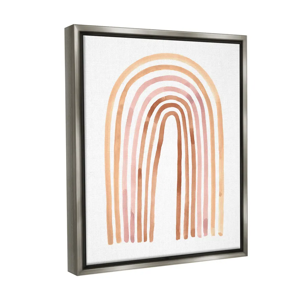 Elevate your home or office to the next level with Stupell Framed Floating Canvas Wall Art. Our premium hand-stretched canvas is mounted securely into a sturdy lightweight frame. The museum-style gap between the wrapped canvas and the box frame gives the illusion of floating artwork. Stupell Wall Art is made in the USA.Features: Dimensions: 17 x 1.7 x 21 Frame, 16 x 1.5 x 20 Canvas ArtFloating Frame Canvas Products are available in sizes 17"x21" and 25"x31". All Floating Frame Canvas Products have a 1.7" Depth.Wall Art is Ready to Hang with Hardware Free Hanging. No Installation required. For Easy Set Up Lean or Layer Artwork on Shelf or Against Wall. Artwork is Permently Fixed into the Frame.Our elevated 1.7" Thick Floating Frame is the perfect complement to our canvas style Wall Art. We use only the highest quality inks in house with industry leading printing solutions. Canvas is hand stretched over a durable wood foundation and then mounted securly into a Modern Box Frame. Made in the USA.Artwork Relates To: Rainbow, Pattern, Boho, Abstract, Stripes, Arch, ShapeDesign by Emma Scarvey