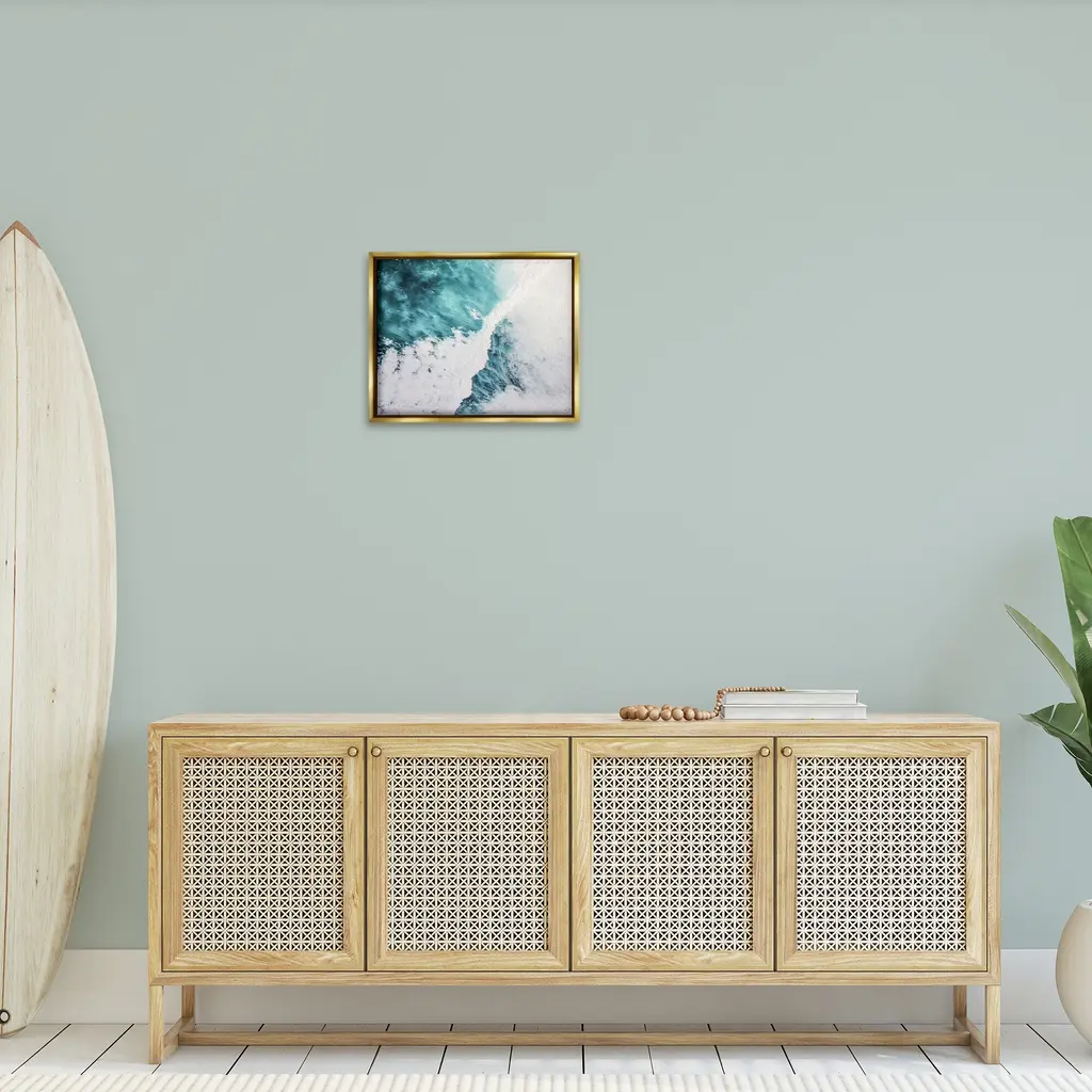 Elevate your home or office to the next level with Stupell Framed Floating Canvas Wall Art. Our premium hand-stretched canvas is mounted securely into a sturdy lightweight frame. The museum-style gap between the wrapped canvas and the box frame gives the illusion of floating artwork. Stupell Wall Art is made in the USA.Features: Dimensions: 21 x 1.7 x 17 Frame, 20 x 1.5 x 16 Canvas ArtFloating Frame Canvas Products are available in sizes 21"x17" and 31"x25". All Floating Frame Canvas Products have a 1.7" Depth.Wall Art is Ready to Hang with Hardware Free Hanging. No Installation required. For Easy Set Up Lean or Layer Artwork on Shelf or Against Wall. Artwork is Permently Fixed into the Frame.Our elevated 1.7" Thick Floating Frame is the perfect complement to our canvas style Wall Art. We use only the highest quality inks in house with industry leading printing solutions. Canvas is hand stretched over a durable wood foundation and then mounted securly into a Modern Box Frame. Made in the USA.Artwork Relates To: Sea, Water, Sea Waves, Shoreline, Coast, Aerial View, Abstract, CoastalDesign by Sisi and Seb