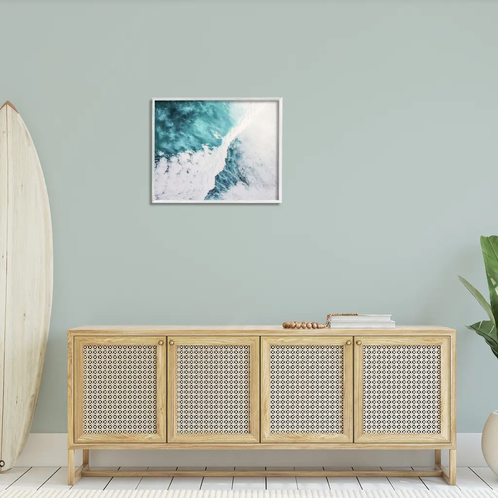 Add dimension to any room with our textured Framed Giclee Artwork. Our framed artwork is securely mounted into a 1.5-inch thick wood grain frame and ready to hang. Frames are available in three alluring styles: black, gray farmhouse and white. In addition, you should check out our oversized options if you want a statement piece. Stupell Wall Art is made in the USA.Features: Dimensions: 14 x 1.5 x 11 FramedFramed Giclee Products are available in the sizes 14"x11", 20"x16" or 30"x24". All Framed Giclee Products have a 1.5" Depth. Wall Art is Ready to Hang with Hardware Free Hanging. No installation required. For Easy Set Up Lean or Layer Artwork on Shelf or Against Wall.Our giclée prints are carefully mounted on a durable MDF backing, and then perfectly finished in a 1.5 inch thick woodgrain frame. Mounted frame colors include black, gray farmhouse and white. Made In USA.Artwork Relates To: Sea, Water, Sea Waves, Shoreline, Coast, Aerial View, Abstract, CoastalDesign by Sisi and Seb