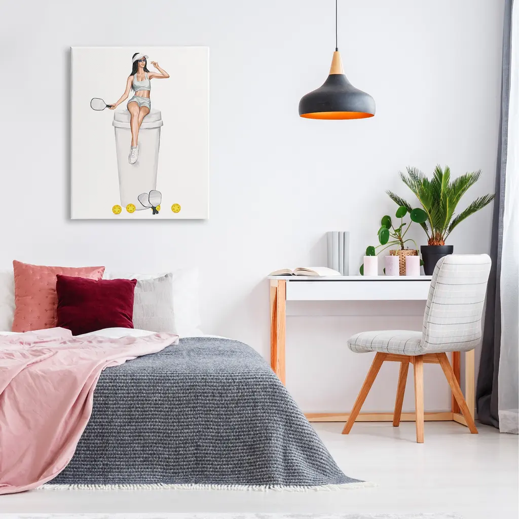 We create our stretched canvas to the highest standards. Using only the highest quality inks and canvas on Mimaki printers, we hand-cut and stretch each piece over a 1.5-inch thick wooden frame for hanging. As a result, the art comes ready to hang on the sturdy ledge with no installation required. Stupell Wall Art is made in the USA.Features: Dimensions: 16 x 1.5 x 20 InchesStretched Canvas Sizes Include Standard: 16 x 1.5 x 20 Large: 20 x 1.5 x 30 X-Large: 30 x 1.5 x 40 Oversized: 36 x 1.5 x 48Wall Art is Ready to Hang - No Installation or Hardware Needed. For Easy Set Up Lean or Layer Artwork on Shelf or Against Wall.Our stretched canvas is created with the highest standards. We use only the highest quality inks and canvas on our in house Mimaki printers, and then hand cut and stretch each piece over a 1.5 inch thick wooden frame for hanging. Made In USA.Artwork Relates To: Girl, Female, Woman, Sports, Tennis, Table Tennis, Coffee Cup, FashionDesign by Ziwei Li