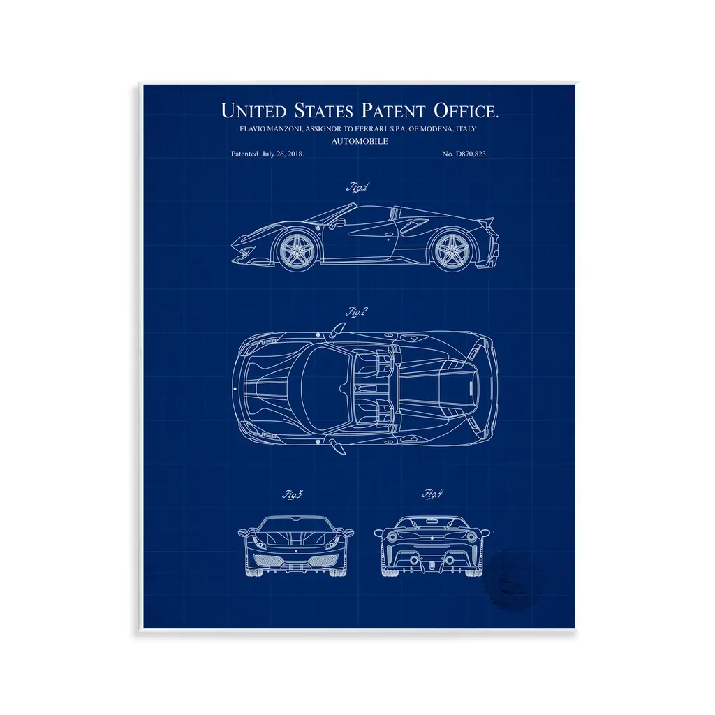 Stupell Automobile Body Blueprint Wall Plaque Art Design By Karl Hronek - 11 X 14