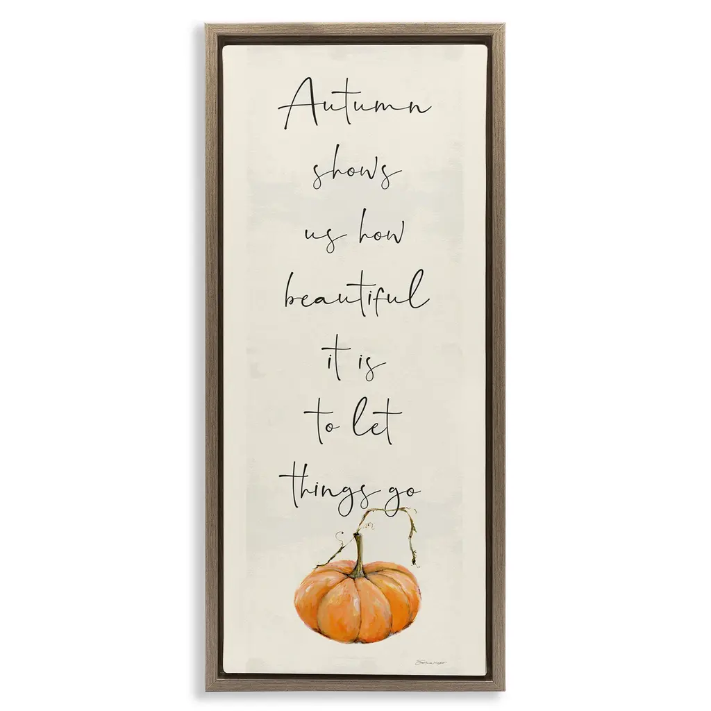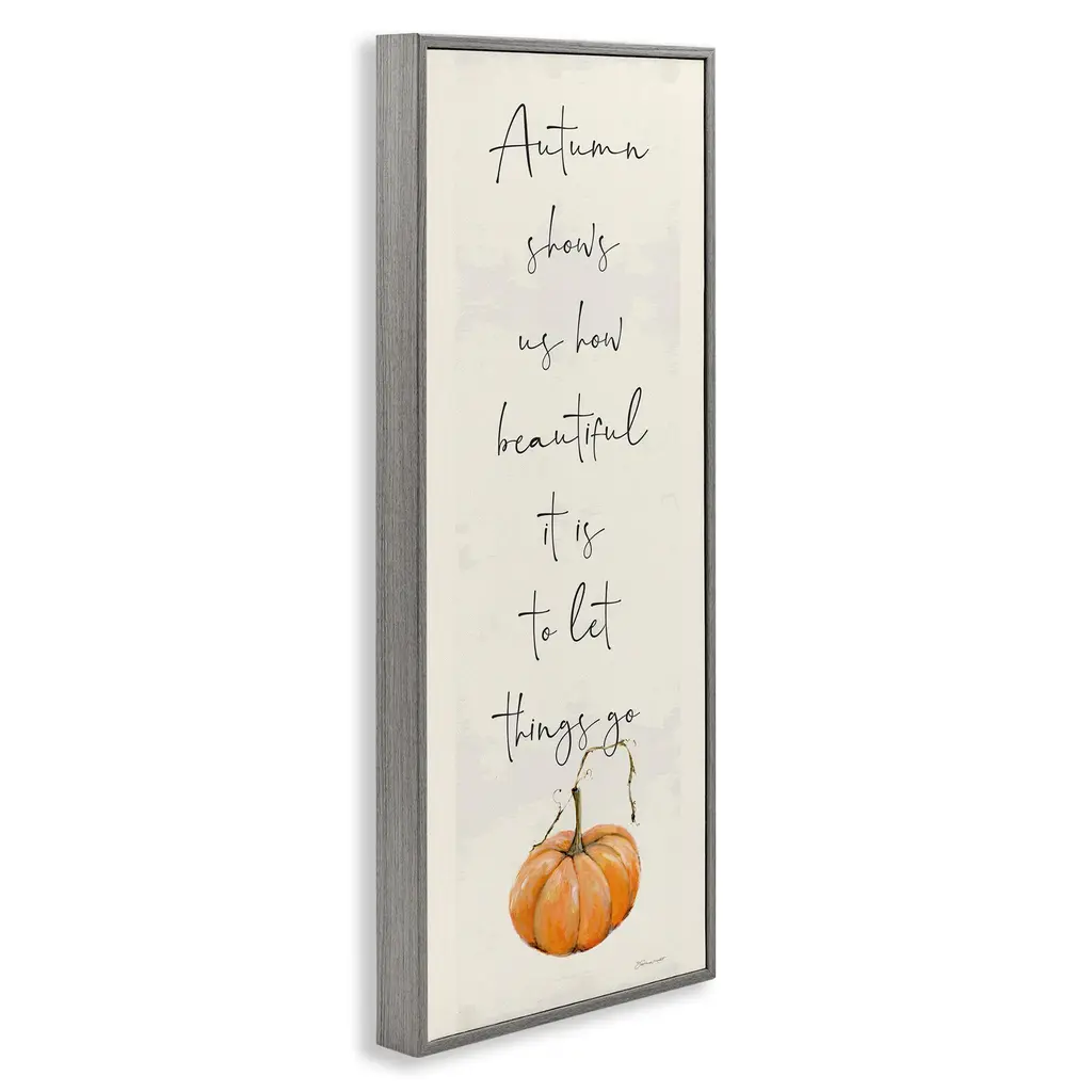 Add dimension to any room with our textured Framed Giclee Artwork. Our framed artwork is securely mounted into a 1.5-inch thick wood grain frame and ready to hang. Frames are available in three alluring styles: black, gray farmhouse and white. In addition, you should check out our oversized options if you want a statement piece. Stupell Wall Art is made in the USA.Features: Dimensions: 10 x 1.5 x 24 FramedFramed Giclee Product Sizes include 10"x24" and 13"x30". All Framed Giclee products have a 1.5" Depth.Wall Art is Ready to Hang with Hardware Free Hanging. No installation required. For Easy Set Up Lean or Layer Artwork on Shelf or Against Wall.Our giclée prints are carefully mounted on a durable MDF backing, and then perfectly finished in a 1.5 inch thick woodgrain frame. Mounted frame colors include black, gray farmhouse and white. Made In USA.Artwork Relates To: Seasonal, Fall, Autumn, Pumpkin, PhraseDesign by Stephanie Workman Marrott