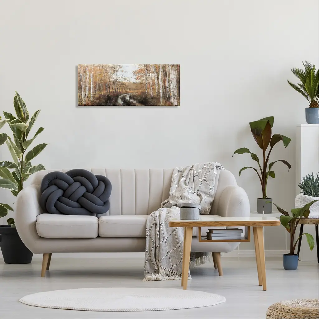 We create our stretched canvas to the highest standards. Using only the highest quality inks and canvas on Mimaki printers, we hand-cut and stretch each piece over a 1.5-inch thick wooden frame for hanging. As a result, the art comes ready to hang on the sturdy ledge with no installation required. Stupell Wall Art is made in the USA.Features: Dimensions: 24 x 1.5 x 10 InchesStretched Canvas Sizes Include Standard: 24 x 1.5 x 10 Large: 30 x 1.5 x 13 X-Large: 40 x 1.5 x 17 Oversized: 48 x 1.5 x 20Wall Art is Ready to Hang - No Installation or Hardware Needed. For Easy Set Up Lean or Layer Artwork on Shelf or Against Wall.Our stretched canvas is created with the highest standards. We use only the highest quality inks and canvas on our in house Mimaki printers, and then hand cut and stretch each piece over a 1.5 inch thick wooden frame for hanging. Made In USA.Artwork Relates To: Painting, Plant, Tree, Vegetation, Nature, Outdoors, Woodland, Path, Water, Scenery, Landscape, GroveDesign by Nina Blue