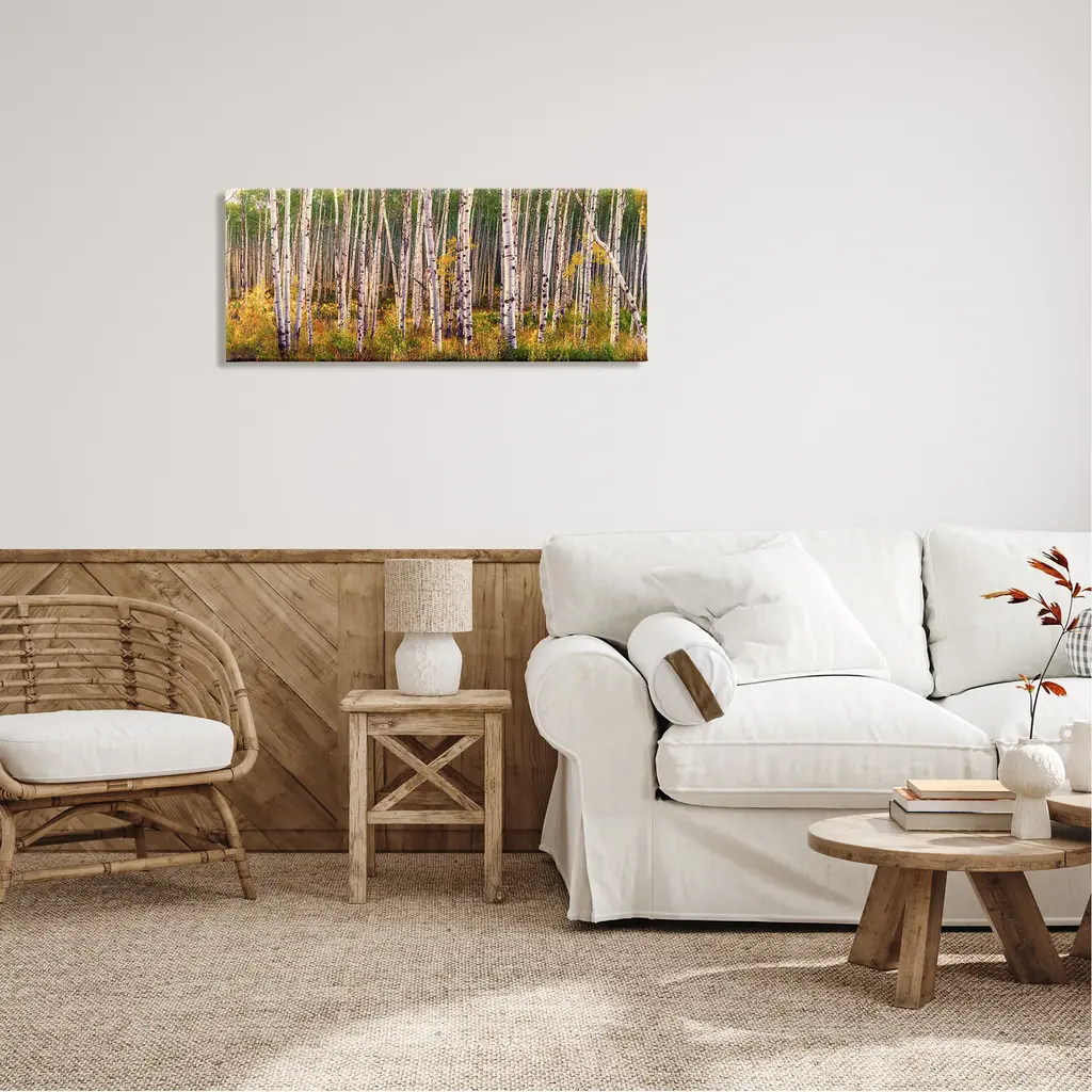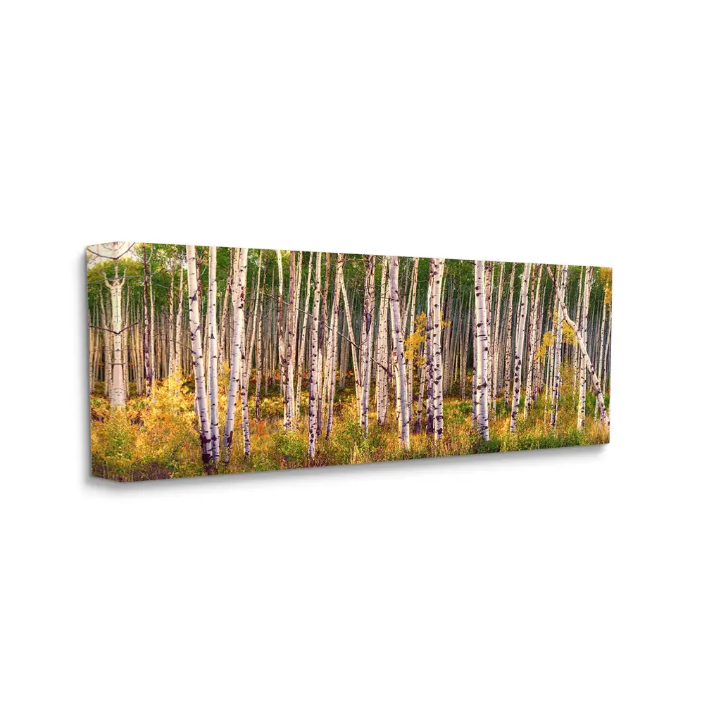 We create our stretched canvas to the highest standards. Using only the highest quality inks and canvas on Mimaki printers, we hand-cut and stretch each piece over a 1.5-inch thick wooden frame for hanging. As a result, the art comes ready to hang on the sturdy ledge with no installation required. Stupell Wall Art is made in the USA.Features: Dimensions: 24 x 1.5 x 10 InchesStretched Canvas Sizes Include Standard: 24 x 1.5 x 10 Large: 30 x 1.5 x 13 X-Large: 40 x 1.5 x 17 Oversized: 48 x 1.5 x 20Wall Art is Ready to Hang with Hardware Free Hanging. No installation required. For Easy Set Up Lean or Layer Artwork on Shelf or Against Wall.Our stretched canvas is created with the highest standards. We use only the highest quality inks and canvas on our in house Mimaki printers, and then hand cut and stretch each piece over a 1.5 inch thick wooden frame for hanging. Made In USA.Artwork Relates To: Plant, Tree, Grove, Land, Nature, Vegetation, Woodland, BirchDesign by Lena Owens