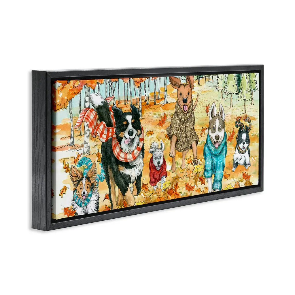 Stupell Autumn Dog Park Animals Running Framed Floater Canvas Wall Art Design By Sherri Buck Baldwin - 25 X 11 - Black