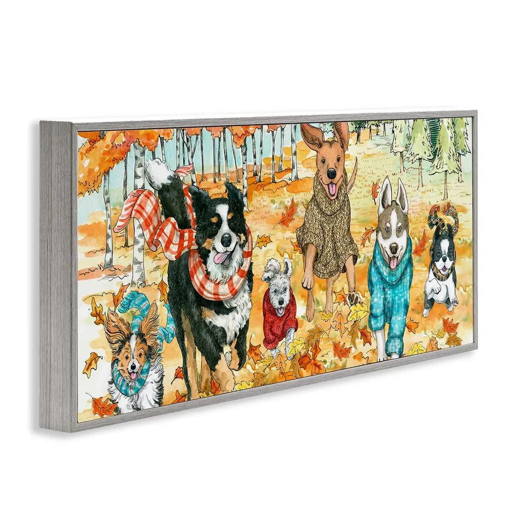 Add dimension to any room with our textured Framed Giclee Artwork. Our framed artwork is securely mounted into a 1.5-inch thick wood grain frame and ready to hang. Frames are available in three alluring styles: black, gray farmhouse and white. In addition, you should check out our oversized options if you want a statement piece. Stupell Wall Art is made in the USA.Features: Dimensions: 24 x 1.5 x 10 FramedFramed Giclee Product Sizes include 24"x10" and 30"x13". All Framed Giclee products have a 1.5" Depth.Wall Art is Ready to Hang with Hardware Free Hanging. No installation required. For Easy Set Up Lean or Layer Artwork on Shelf or Against Wall.Our giclée prints are carefully mounted on a durable MDF backing, and then perfectly finished in a 1.5 inch thick woodgrain frame. Mounted frame colors include black, gray farmhouse and white. Made In USA.Artwork Relates To: Seasonal, Fall, Autumn, Animal, Pet, Dog, Leaves, LandscapeDesign by Sherri Buck Baldwin