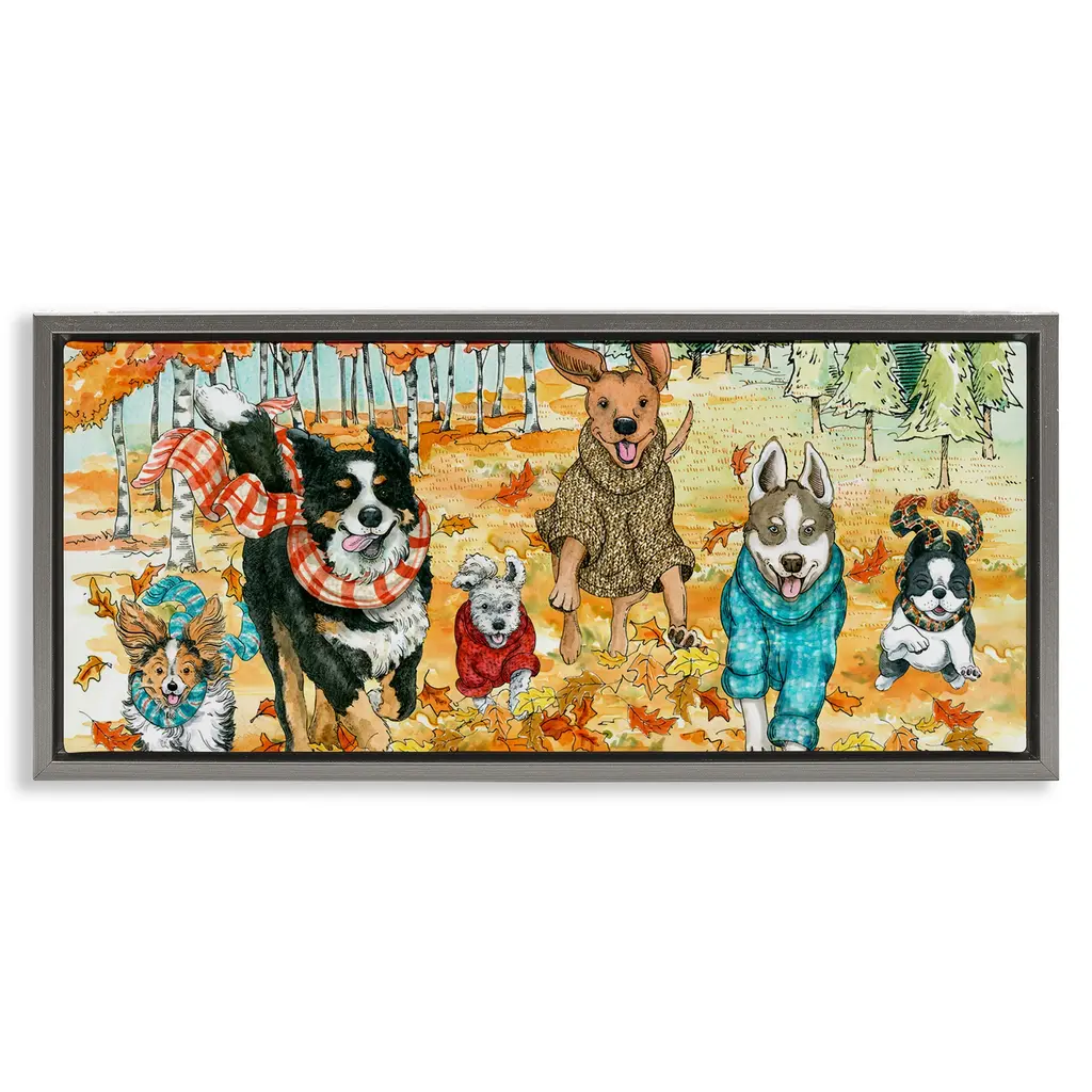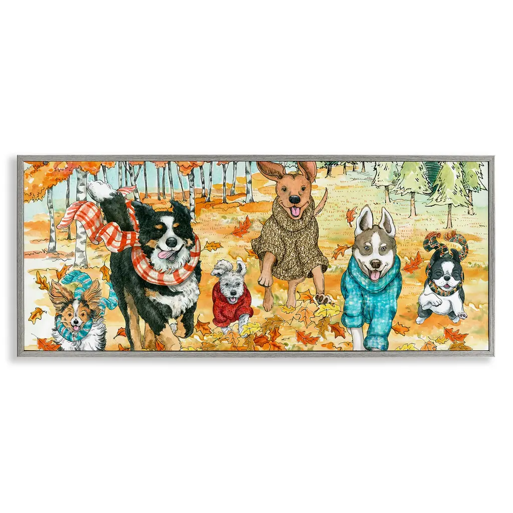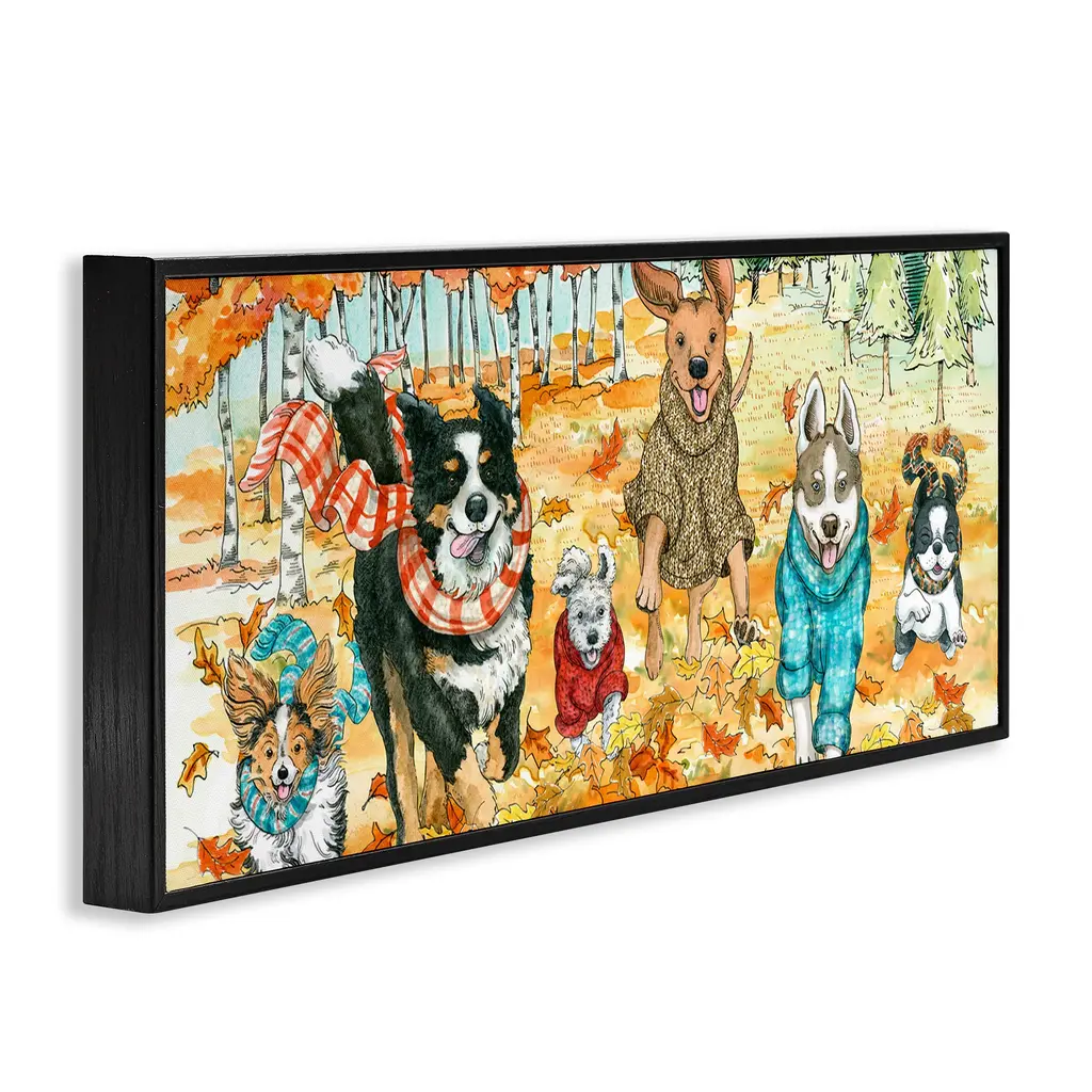Stupell Autumn Dog Park Animals Running Framed Giclee Art Design By Sherri Buck Baldwin - 30 X 13 - Black