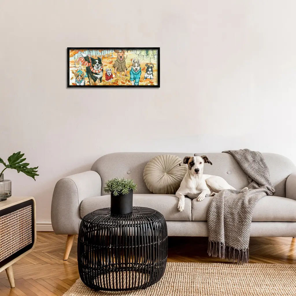 Add dimension to any room with our textured Framed Giclee Artwork. Our framed artwork is securely mounted into a 1.5-inch thick wood grain frame and ready to hang. Frames are available in three alluring styles: black, gray farmhouse and white. In addition, you should check out our oversized options if you want a statement piece. Stupell Wall Art is made in the USA.Features: Dimensions: 24 x 1.5 x 10 FramedFramed Giclee Product Sizes include 24"x10" and 30"x13". All Framed Giclee products have a 1.5" Depth.Wall Art is Ready to Hang with Hardware Free Hanging. No installation required. For Easy Set Up Lean or Layer Artwork on Shelf or Against Wall.Our giclée prints are carefully mounted on a durable MDF backing, and then perfectly finished in a 1.5 inch thick woodgrain frame. Mounted frame colors include black, gray farmhouse and white. Made In USA.Artwork Relates To: Seasonal, Fall, Autumn, Animal, Pet, Dog, Leaves, LandscapeDesign by Sherri Buck Baldwin