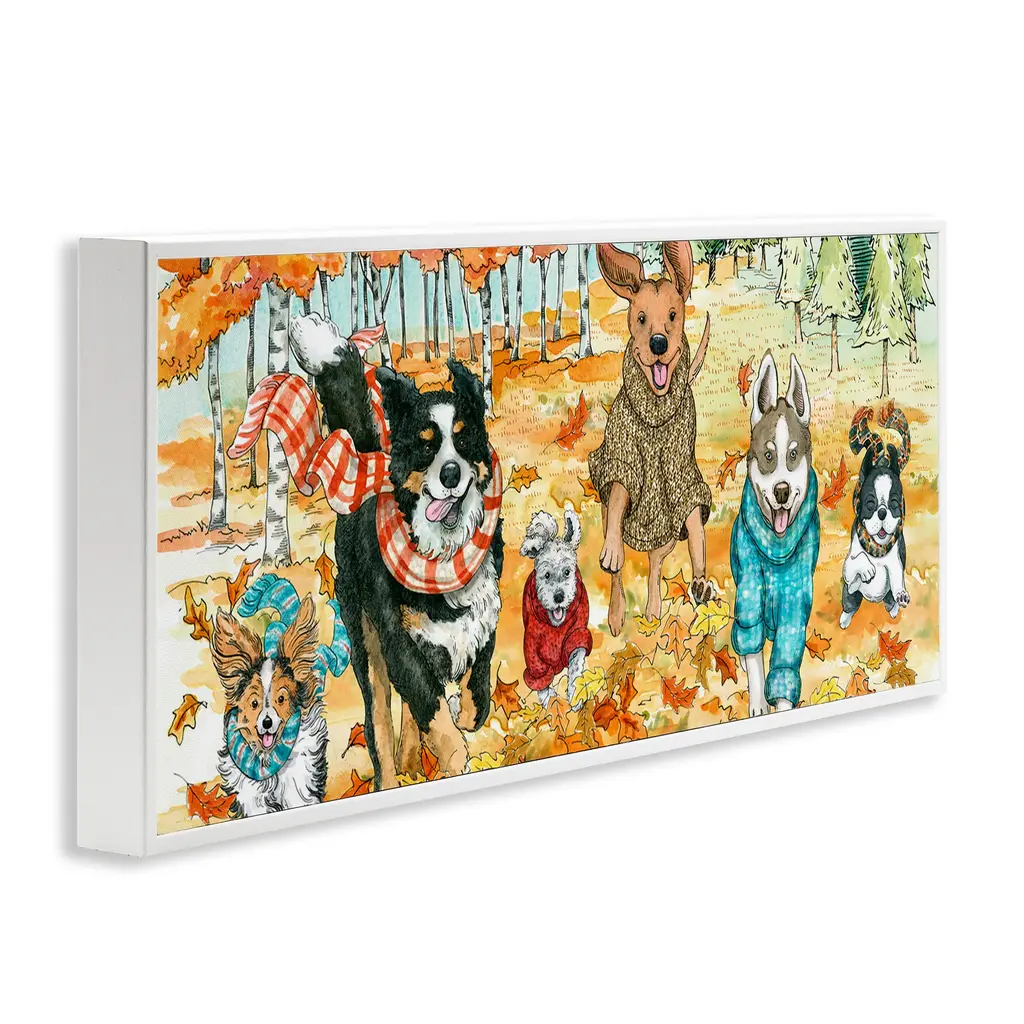 Stupell Autumn Dog Park Animals Running Framed Giclee Art Design By Sherri Buck Baldwin - 30 X 13 - White