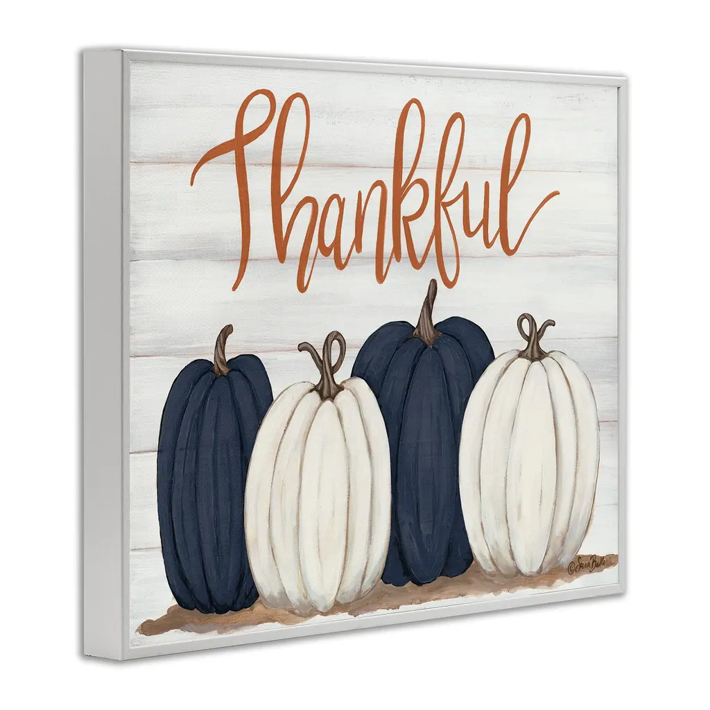 Stupell Autumn Farm Pumpkin Harvest With Thankful Phrase Framed Giclee Texturized Art By Sarah Baker - 11 X 14 - White