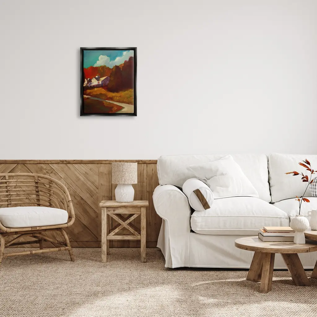 Elevate your home or office to the next level with Stupell Framed Floating Canvas Wall Art. Our premium hand-stretched canvas is mounted securely into a sturdy lightweight frame. The museum-style gap between the wrapped canvas and the box frame gives the illusion of floating artwork. Stupell Wall Art is made in the USA.Features: Dimensions: 17 x 1.7 x 21 Frame, 16 x 1.5 x 20 Canvas ArtFloating Frame Sizes Include Standard: 17 x 1.7 x 21 Oversized: 25 x 1.7 x 31Wall Art is Ready to Hang with Hardware Free Hanging. No installation required. For Easy Set Up Lean or Layer Artwork on Shelf or Against Wall.Our elevated 1.7" Thick Floating Frame is the perfect complement to our canvas style Wall Art. We use only the highest quality inks in house with industry leading printing solutions. Canvas is hand stretched over a durable wood foundation and then mounted securly into a Modern Box Frame. Made in the USA.Artwork Relates To: Painting, Cottage, House, Nature, Countryside, Landscape, Field, Scenery, Rural, GrasslandDesign by Eddie Barbini