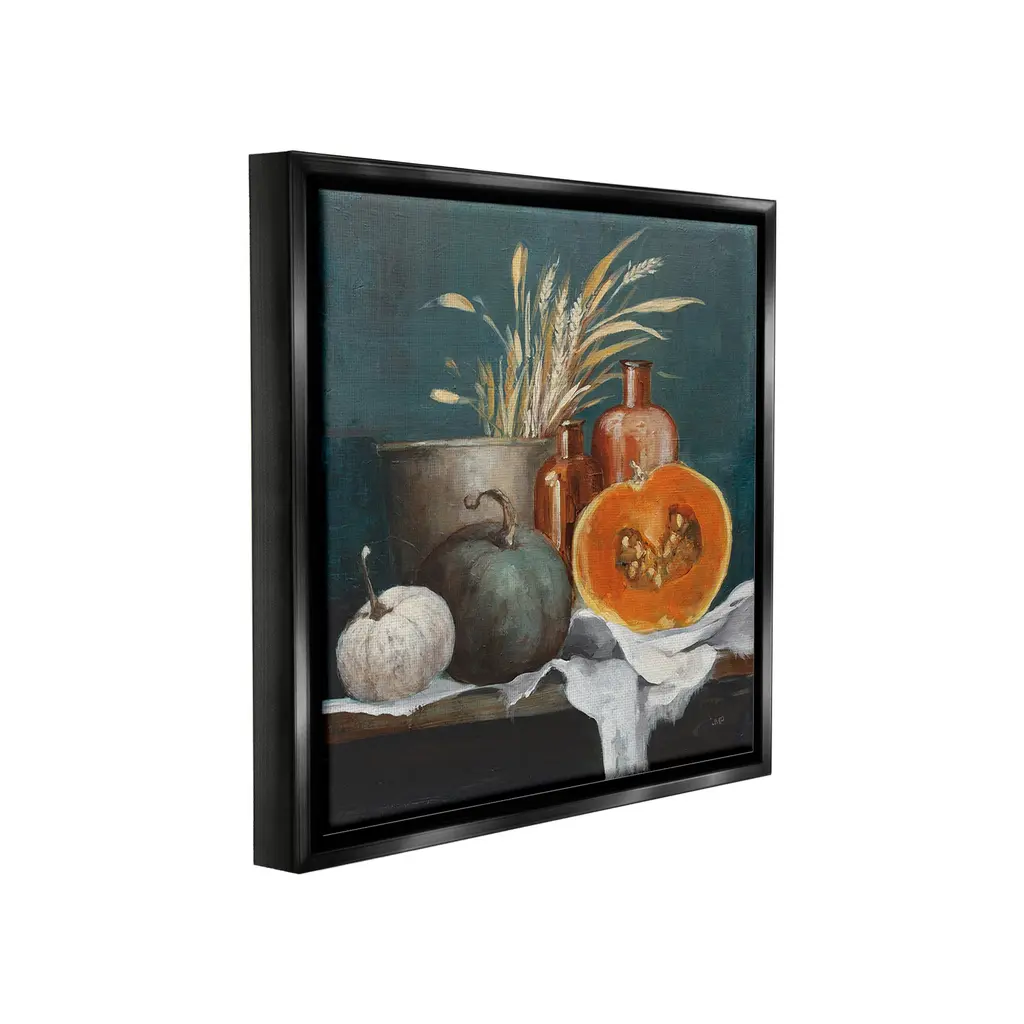Elevate your home or office to the next level with Stupell Framed Floating Canvas Wall Art. Our premium hand-stretched canvas is mounted securely into a sturdy lightweight frame. The museum-style gap between the wrapped canvas and the box frame gives the illusion of floating artwork. Stupell Wall Art is made in the USA.Features: Dimensions: 18 x 1.7 x 18 Frame, 17 x 1.5 x 17 Canvas ArtFloating Frame Canvas Products are available in sizes 18"x18" and 25"x25". All Floating Frame Canvas Products have a 1.7" Depth.Wall Art is Ready to Hang with Hardware Free Hanging. No Installation required. For Easy Set Up Lean or Layer Artwork on Shelf or Against Wall. Artwork is Permently Fixed into the Frame.Our elevated 1.7" Thick Floating Frame is the perfect complement to our canvas style Wall Art. We use only the highest quality inks in house with industry leading printing solutions. Canvas is hand stretched over a durable wood foundation and then mounted securly into a Modern Box Frame. Made in the USA.Artwork Relates To: Plant, Flower, Dahlia, Pumpkin, Vegetable, Pottery, Vase, Still Life, Fall, Autumn, Foliage, Bouquet, Floral, BotanicalDesign by Julia Purinton