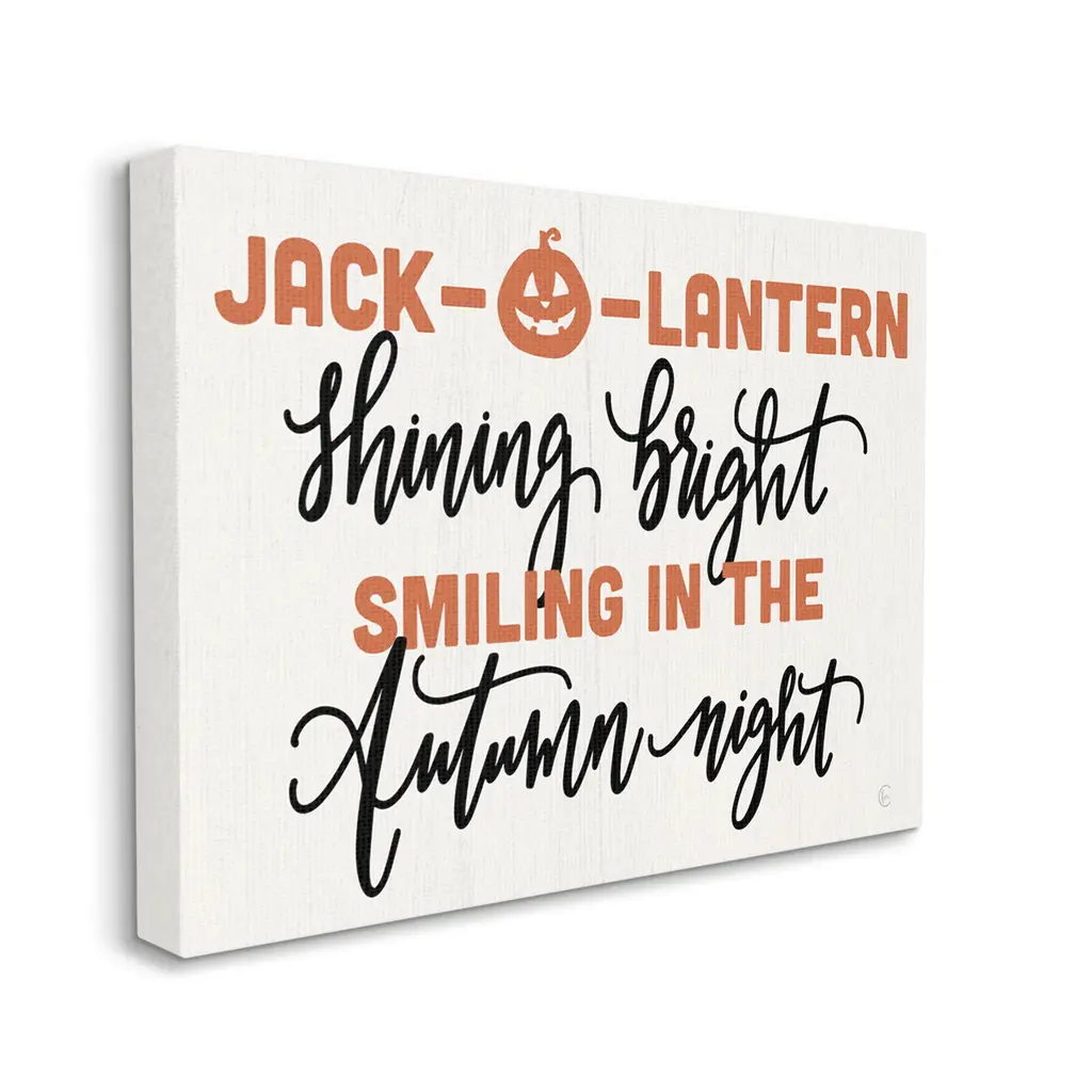 Stupell Autumn Jack-O-Lantern Phrase Canvas Wall Art Design By Fearfully Made Creations - 30 X 24