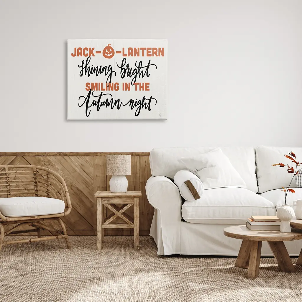 Stupell Autumn Jack-O-Lantern Phrase Canvas Wall Art Design By Fearfully Made Creations - 40 X 30