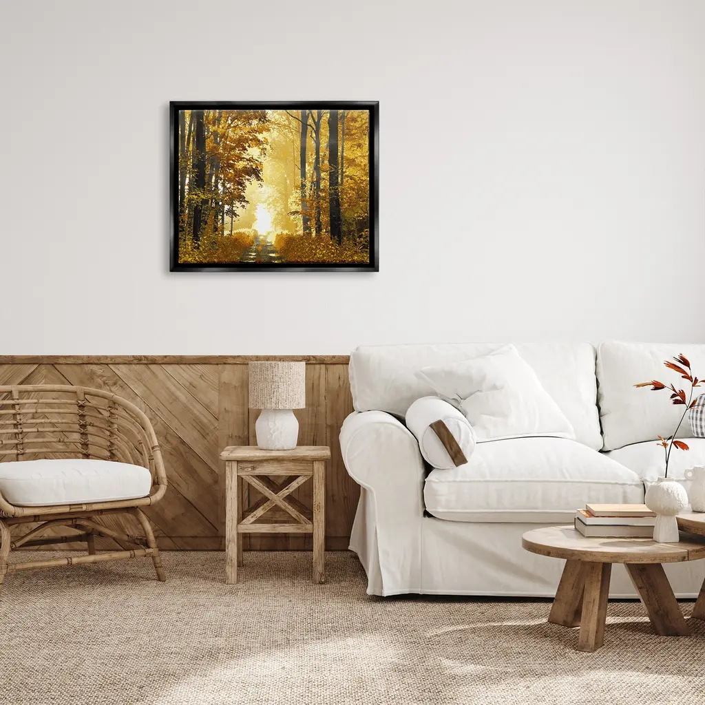Elevate your home or office to the next level with Stupell Framed Floating Canvas Wall Art. Our premium hand-stretched canvas is mounted securely into a sturdy lightweight frame. The museum-style gap between the wrapped canvas and the box frame gives the illusion of floating artwork. Stupell Wall Art is made in the USA.Features: Dimensions: 21 x 1.7 x 17 Frame, 20 x 1.5 x 16 Canvas ArtFloating Frame Sizes Include Standard: 21 x 1.7 x 17 Oversized: 31 x 1.7 x 25Wall Art is Ready to Hang with Hardware Free Hanging. No installation required. For Easy Set Up Lean or Layer Artwork on Shelf or Against Wall.Our elevated 1.7" Thick Floating Frame is the perfect complement to our canvas style Wall Art. We use only the highest quality inks in house with industry leading printing solutions. Canvas is hand stretched over a durable wood foundation and then mounted securly into a Modern Box Frame. Made in the USA.Artwork Relates To: Plant, Vegetation, Grove, Land, Nature, Outdoors, Tree, Woodland, Scenery, Landscape, Fall, AutumnDesign by Derek Scott