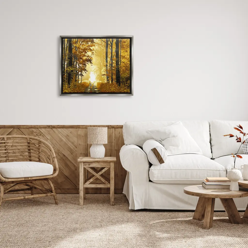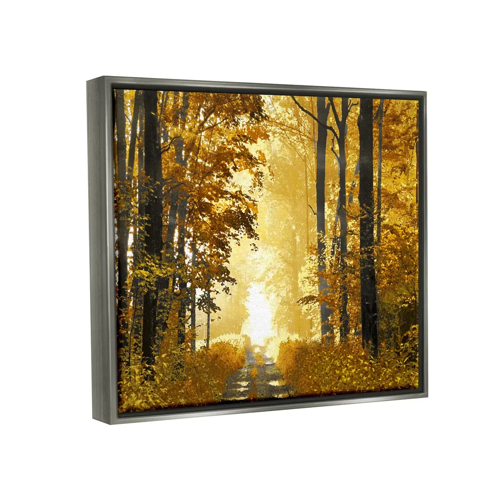 Elevate your home or office to the next level with Stupell Framed Floating Canvas Wall Art. Our premium hand-stretched canvas is mounted securely into a sturdy lightweight frame. The museum-style gap between the wrapped canvas and the box frame gives the illusion of floating artwork. Stupell Wall Art is made in the USA.Features: Dimensions: 21 x 1.7 x 17 Frame, 20 x 1.5 x 16 Canvas ArtFloating Frame Sizes Include Standard: 21 x 1.7 x 17 Oversized: 31 x 1.7 x 25Wall Art is Ready to Hang with Hardware Free Hanging. No installation required. For Easy Set Up Lean or Layer Artwork on Shelf or Against Wall.Our elevated 1.7" Thick Floating Frame is the perfect complement to our canvas style Wall Art. We use only the highest quality inks in house with industry leading printing solutions. Canvas is hand stretched over a durable wood foundation and then mounted securly into a Modern Box Frame. Made in the USA.Artwork Relates To: Plant, Vegetation, Grove, Land, Nature, Outdoors, Tree, Woodland, Scenery, Landscape, Fall, AutumnDesign by Derek Scott