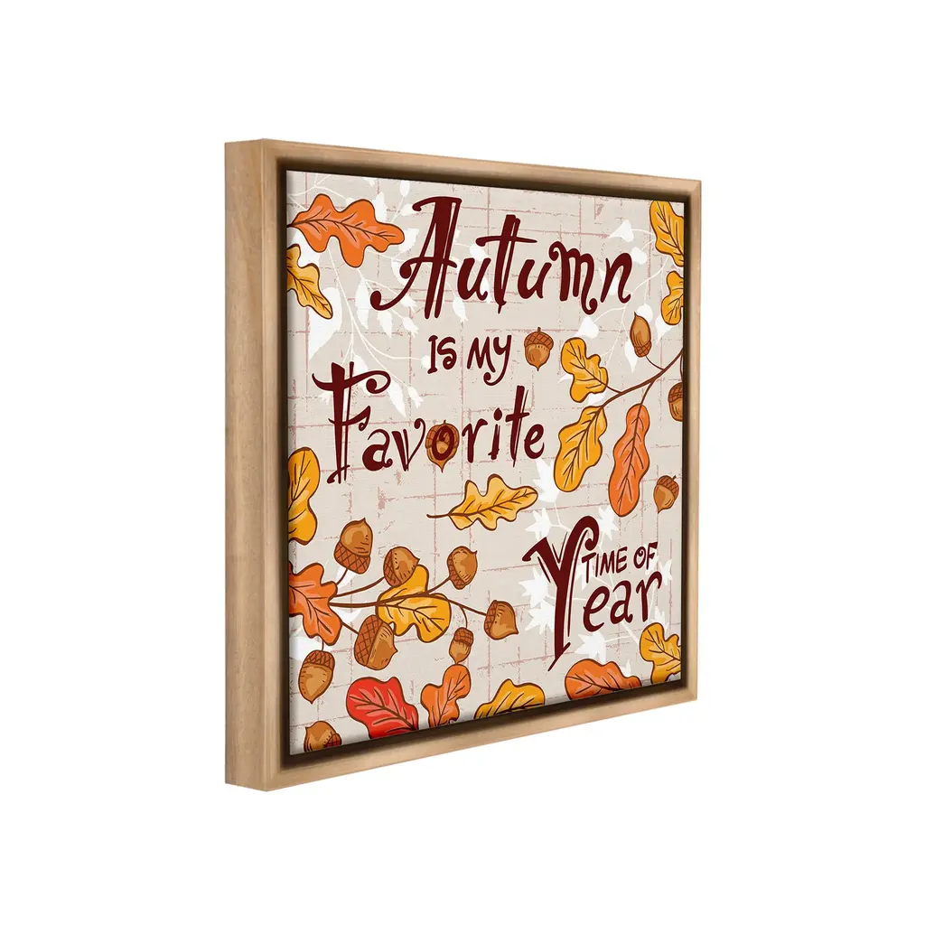 Elevate your home or office to the next level with Stupell Framed Floating Canvas Wall Art. Our premium hand-stretched canvas is mounted securely into a sturdy lightweight frame. The museum-style gap between the wrapped canvas and the box frame gives the illusion of floating artwork. Stupell Wall Art is made in the USA.Features: Dimensions: 18 x 1.7 x 18 Frame, 17 x 1.5 x 17 Canvas ArtFloating Frame Canvas Products are available in sizes 18"x18" and 25"x25". All Floating Frame Canvas Products have a 1.7" Depth.Wall Art is Ready to Hang with Hardware Free Hanging. No Installation required. For Easy Set Up Lean or Layer Artwork on Shelf or Against Wall. Artwork is Permently Fixed into the Frame.Our elevated 1.7" Thick Floating Frame is the perfect complement to our canvas style Wall Art. We use only the highest quality inks in house with industry leading printing solutions. Canvas is hand stretched over a durable wood foundation and then mounted securly into a Modern Box Frame. Made in the USA.Artwork Relates To: Nature, Country, Harvest, Plant, Fall, Autumn, Phrase, Pattern, Acorn, Autumn is my Favorite Time of YearDesign by Diane Labombarbe