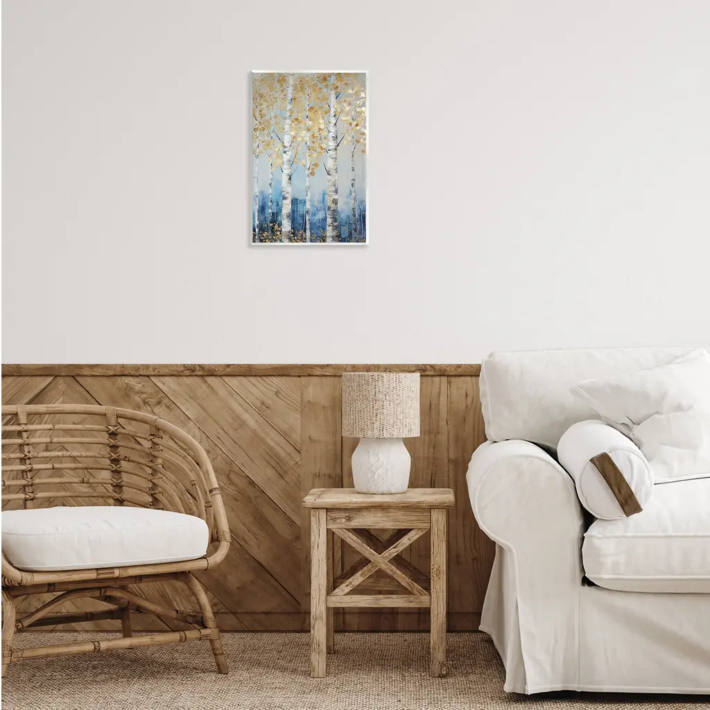 Our wall plaques start as high-quality lithograph prints mounted on durable 0.5-inch thick MDF wood. Each piece is hand finished and comes with a fresh layer of white foil on the sides to give it a crisp, clean look. Plaques arrive ready to hang without installation and come with removable plastic corners to keep them from damage in transit. Stupell Wall Art is made in the USA.Features: Dimensions: 10 x 0.5 x 15 InchesWall Plaque Product Sizes Include 10"x15" and 13"x19". All wall plaque products have a 0.5" Depth. Wall Art is Ready to Hang with Hardware Free Hanging. No installation required. For Easy Set Up Lean or Layer Artwork on Shelf or Against Wall.All of our wall plaques start off as high quality lithograph prints that are then mounted on durable 0.5 inch thick MDF wood. Each piece is hand finished and comes with a fresh layer of foil on the sides to give it a crisp clean look. Made In USA.Artwork Relates To: Plant, Tree, Birch, Grove, Land, Nature, Vegetation, Woodland, Forest, Foliage, Autumn, FallDesign by Roozbeh Bahramali