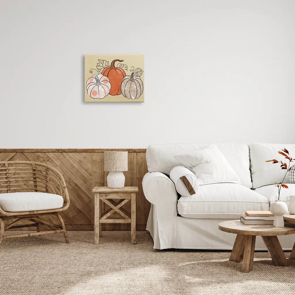 Proudly made in the USA, Our stretched canvas is created with the highest standards. We use only the highest quality inks and canvas on our in house Mimaki printers, and then hand cut and stretch each piece over a 1.5 inch thick wooden frame for hanging. The art comes ready to hang with no installation required.Features: Dimensions: 20 x 1.5 x 16 InchesStretched Canvas Sizes Include Standard: 20 x 1.5 x 16 Large: 30 x 1.5 x 20 X-Large: 40 x 1.5 x 30 Oversized: 48 x 1.5 x 36Wall Art is Ready to Hang - No Installation or Hardware Needed. For Easy Set Up Lean or Layer Artwork on Shelf or Against Wall.Our stretched canvas is created with the highest standards. We use only the highest quality inks and canvas on our in house Mimaki printers, and then hand cut and stretch each piece over a 1.5 inch thick wooden frame for hanging. Made In USA.Artwork Relates To: Pumpkin, Produce, Plant, Gourd, Fall, Harvest, Pattern, Floral, Flower, AutumnDesign by Abi Hall
