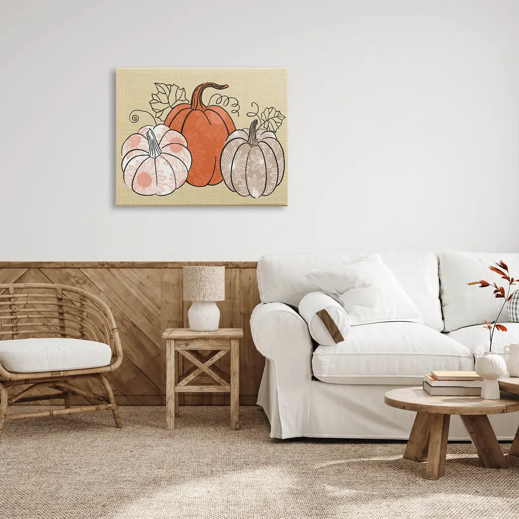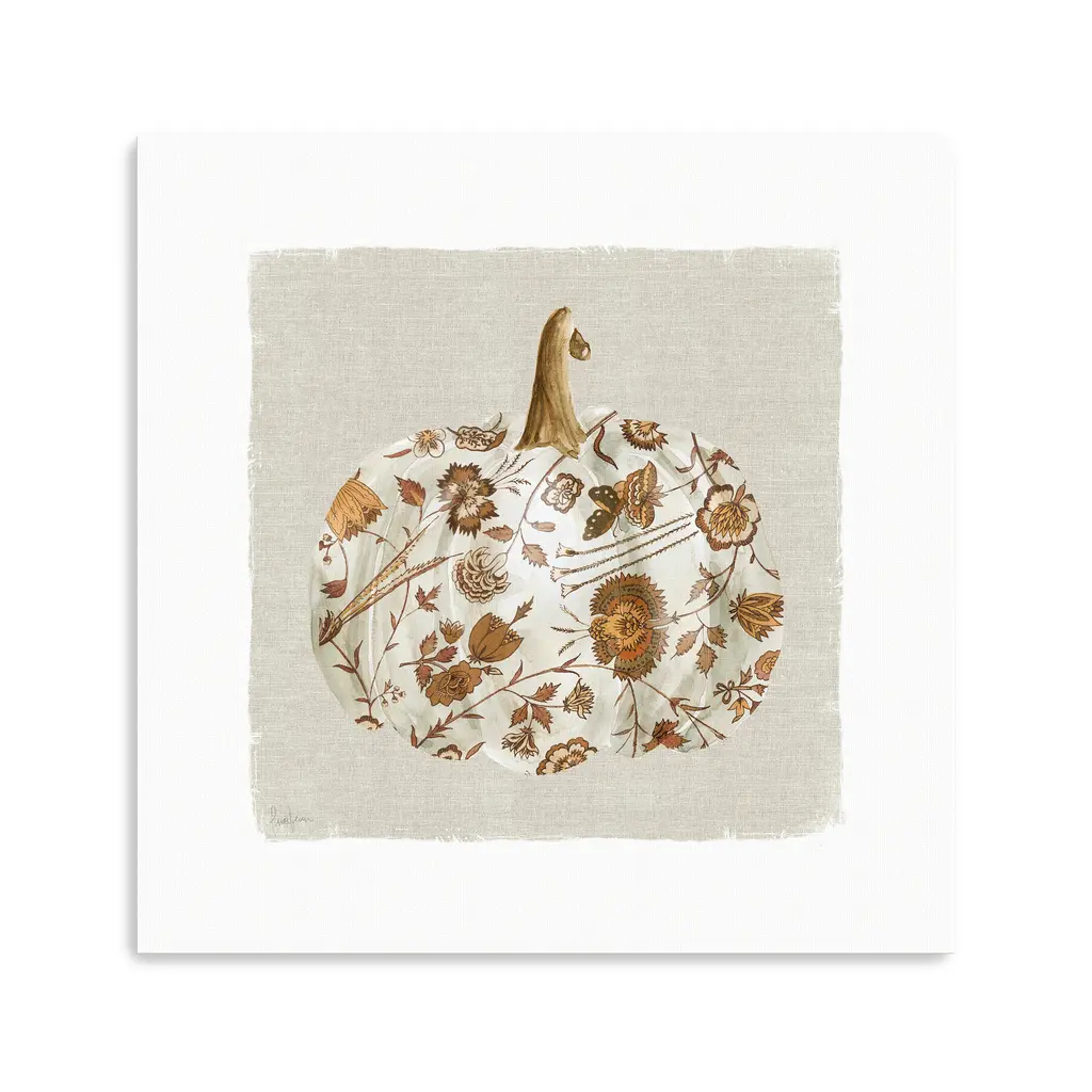 Proudly made in the USA, Our stretched canvas is created with the highest standards. We use only the highest quality inks and canvas on our in house Mimaki printers, and then hand cut and stretch each piece over a 1.5 inch thick wooden frame for hanging. The art comes ready to hang with no installation required.Features: Dimensions: 20 x 1.5 x 16 InchesStretched Canvas Sizes Include Standard: 20 x 1.5 x 16 Large: 30 x 1.5 x 20 X-Large: 40 x 1.5 x 30 Oversized: 48 x 1.5 x 36Wall Art is Ready to Hang - No Installation or Hardware Needed. For Easy Set Up Lean or Layer Artwork on Shelf or Against Wall.Our stretched canvas is created with the highest standards. We use only the highest quality inks and canvas on our in house Mimaki printers, and then hand cut and stretch each piece over a 1.5 inch thick wooden frame for hanging. Made In USA.Artwork Relates To: Pumpkin, Produce, Plant, Gourd, Fall, Harvest, Pattern, Floral, Flower, AutumnDesign by Abi Hall
