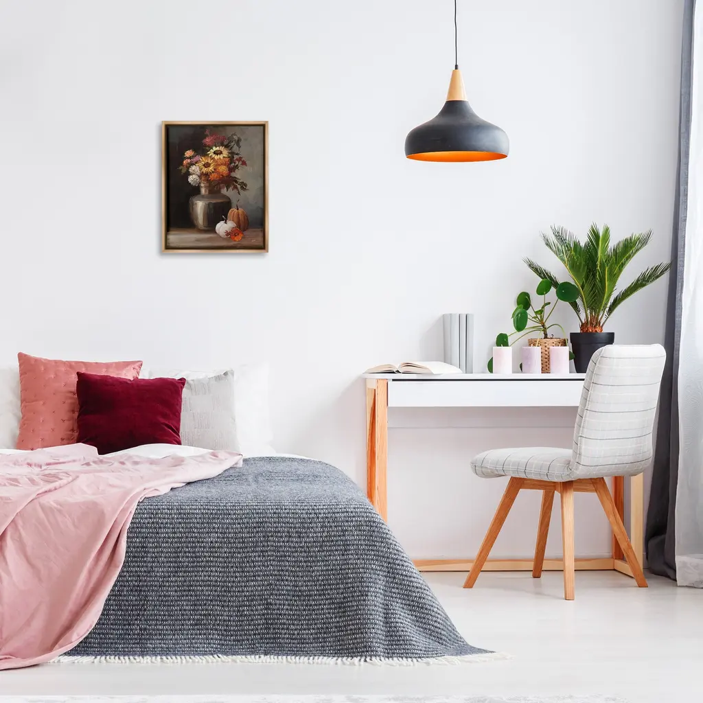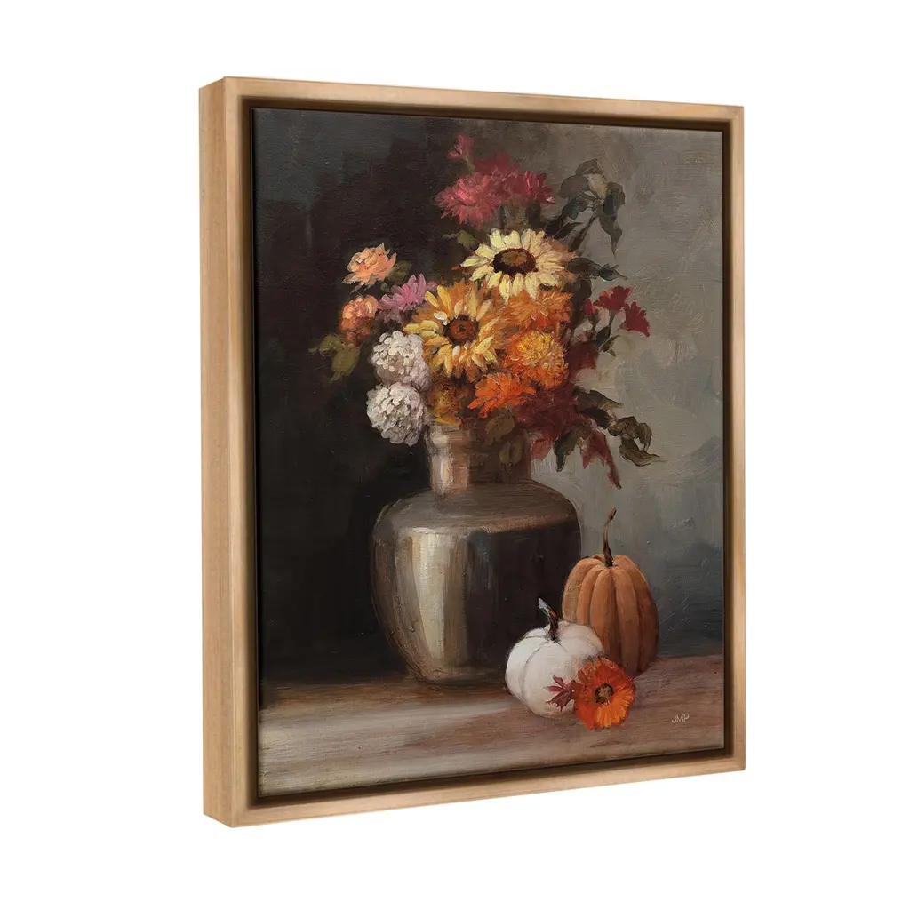 Elevate your home or office to the next level with Stupell Framed Floating Canvas Wall Art. Our premium hand-stretched canvas is mounted securely into a sturdy lightweight frame. The museum-style gap between the wrapped canvas and the box frame gives the illusion of floating artwork. Stupell Wall Art is made in the USA.Features: Dimensions: 17 x 1.7 x 21 Frame, 16 x 1.5 x 20 Canvas ArtFloating Frame Canvas Products are available in sizes 17"x21" and 25"x31". All Floating Frame Canvas Products have a 1.7" Depth.Wall Art is Ready to Hang with Hardware Free Hanging. No Installation required. For Easy Set Up Lean or Layer Artwork on Shelf or Against Wall. Artwork is Permently Fixed into the Frame.Our elevated 1.7" Thick Floating Frame is the perfect complement to our canvas style Wall Art. We use only the highest quality inks in house with industry leading printing solutions. Canvas is hand stretched over a durable wood foundation and then mounted securly into a Modern Box Frame. Made in the USA.Artwork Relates To: Plant, Flower, Dahlia, Pumpkin, Vegetable, Pottery, Vase, Still Life, Fall, Autumn, Foliage, Bouquet, Floral, BotanicalDesign by Julia Purinton
