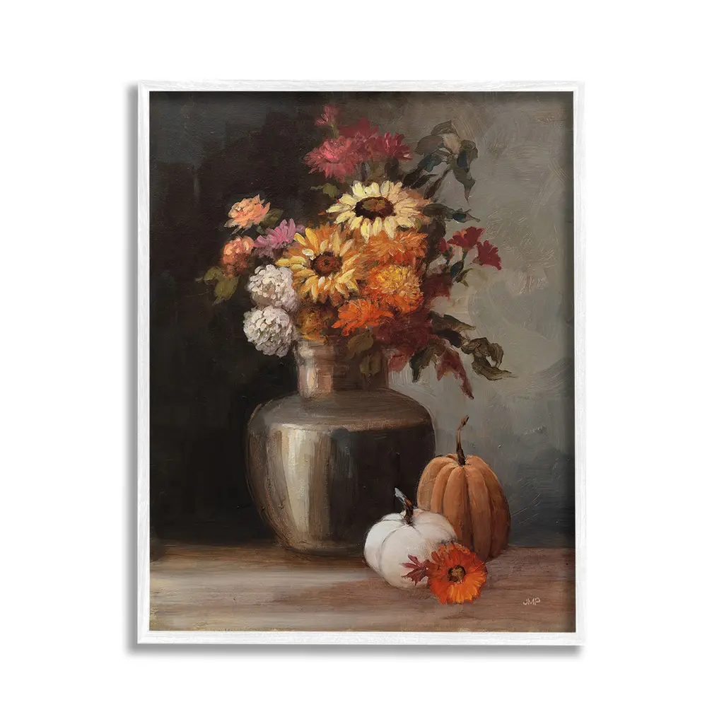 Add dimension to any room with our textured Framed Giclee Artwork. Our framed artwork is securely mounted into a 1.5-inch thick wood grain frame and ready to hang. Frames are available in three alluring styles: black, gray farmhouse and white. In addition, you should check out our oversized options if you want a statement piece. Stupell Wall Art is made in the USA.Features: Dimensions: 11 x 1.5 x 14 FramedFramed Giclee Products are available in the sizes 11"x14", 16"x20" or 24"x30". All Framed Giclee Products have a 1.5" Depth. Wall Art is Ready to Hang with Hardware Free Hanging. No installation required. For Easy Set Up Lean or Layer Artwork on Shelf or Against Wall.Our giclée prints are carefully mounted on a durable MDF backing, and then perfectly finished in a 1.5 inch thick woodgrain frame. Mounted frame colors include black, gray farmhouse and white. Made In USA.Artwork Relates To: Plant, Flower, Dahlia, Pumpkin, Vegetable, Pottery, Vase, Still Life, Fall, Autumn, Foliage, Bouquet, Floral, BotanicalDesign by Julia Purinton