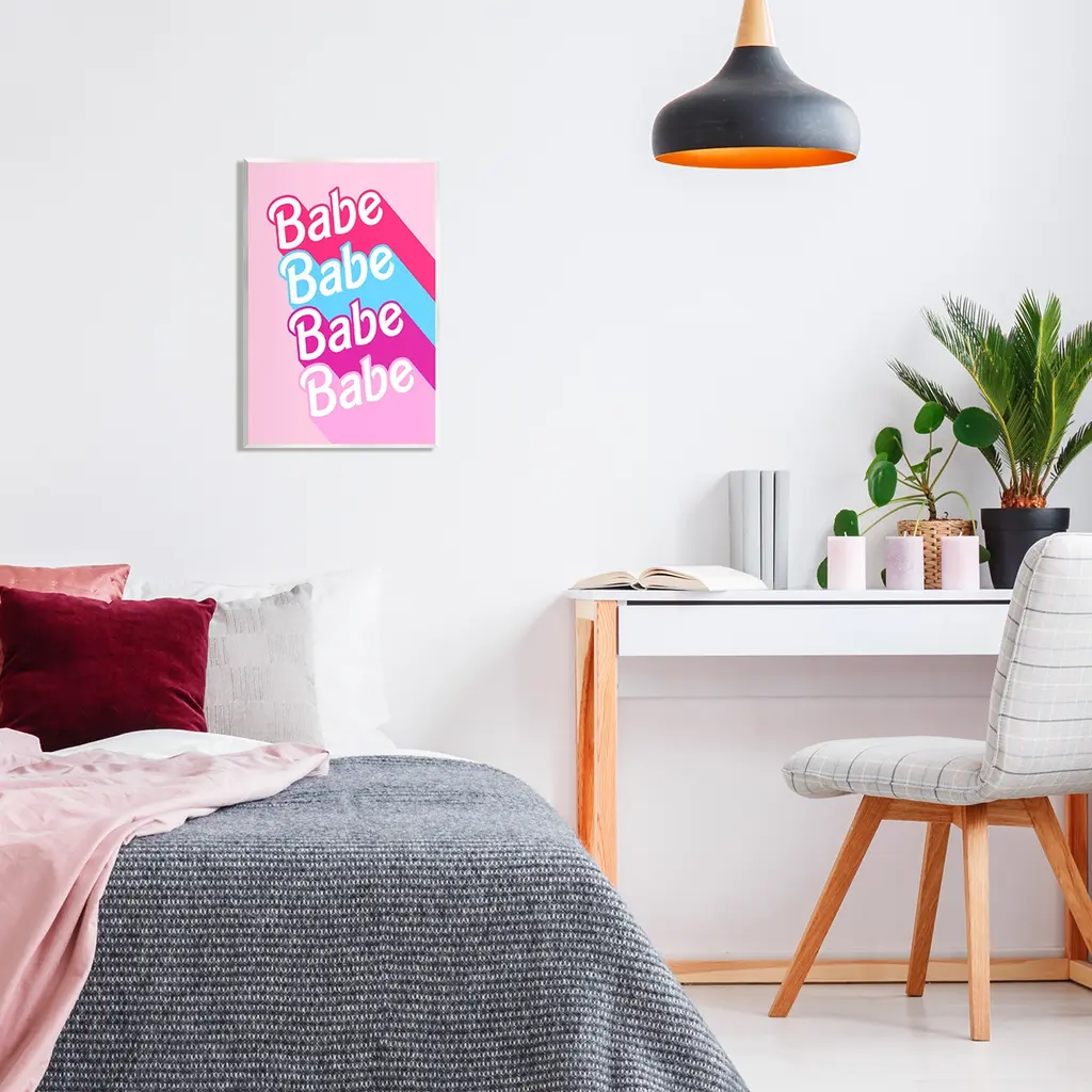 Our wall plaques start as high-quality lithograph prints mounted on durable 0.5-inch thick MDF wood. Each piece is hand finished and comes with a fresh layer of white foil on the sides to give it a crisp, clean look. Plaques arrive ready to hang without installation and come with removable plastic corners to keep them from damage in transit. Stupell Wall Art is made in the USA.Features: Dimensions: 10 x 0.5 x 15 InchesWall Plaque Sizes Include Standard: 10 x 0.5 x 15 Oversized: 13 x 0.5 x 19Wall Art is Ready to Hang with Hardware Free Hanging. No installation required. For Easy Set Up Lean or Layer Artwork on Shelf or Against Wall.All of our wall plaques start off as high quality lithograph prints that are then mounted on durable 0.5 inch thick MDF wood. Each piece is hand finished and comes with a fresh layer of foil on the sides to give it a crisp clean look. Made In USA.Artwork Relates To: Pink, Phrase, Girl Power, Glam, BabeDesign by Daphne Polselli