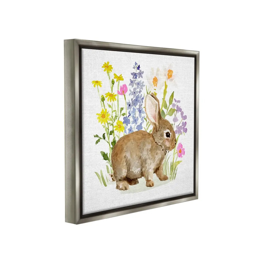 Elevate your home or office to the next level with Stupell Framed Floating Canvas Wall Art. Our premium hand-stretched canvas is mounted securely into a sturdy lightweight frame. The museum-style gap between the wrapped canvas and the box frame gives the illusion of floating artwork. Stupell Wall Art is made in the USA.Features: Dimensions: 18 x 1.7 x 18 Frame, 17 x 1.5 x 17 Canvas ArtFloating Frame Canvas Products are available in sizes 18"x18" and 25"x25". All Floating Frame Canvas Products have a 1.7" Depth.Wall Art is Ready to Hang with Hardware Free Hanging. No Installation required. For Easy Set Up Lean or Layer Artwork on Shelf or Against Wall. Artwork is Permently Fixed into the Frame.Our elevated 1.7" Thick Floating Frame is the perfect complement to our canvas style Wall Art. We use only the highest quality inks in house with industry leading printing solutions. Canvas is hand stretched over a durable wood foundation and then mounted securly into a Modern Box Frame. Made in the USA.Artwork Relates To: Animal, Mammal, Rabbit, Flower, Bunny, Spring, Floral, NatureDesign by Victoria Barnes
