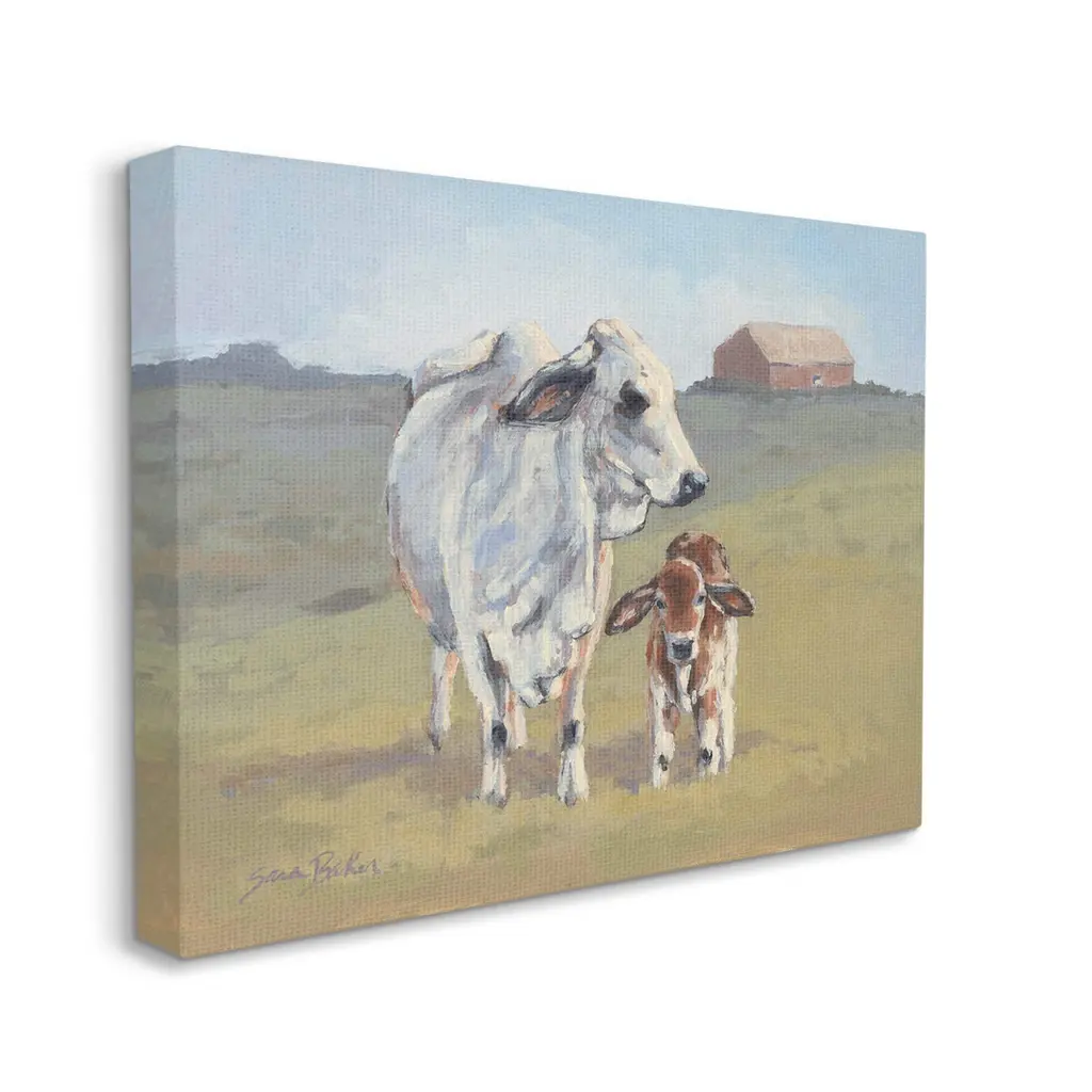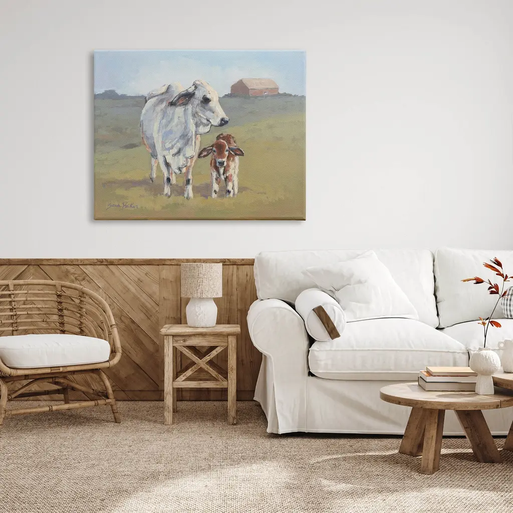 Proudly made in the USA, Our stretched canvas is created with the highest standards. We use only the highest quality inks and canvas on our in house Mimaki printers, and then hand cut and stretch each piece over a 1.5 inch thick wooden frame for hanging. The art comes ready to hang with no installation required.Features: Dimensions: 20 x 1.5 x 16 InchesStretched Canvas Sizes Include Standard: 20 x 1.5 x 16 Large: 30 x 1.5 x 20 X-Large: 40 x 1.5 x 30 Oversized: 48 x 1.5 x 36Wall Art is Ready to Hang - No Installation or Hardware Needed. For Easy Set Up Lean or Layer Artwork on Shelf or Against Wall.Our stretched canvas is created with the highest standards. We use only the highest quality inks and canvas on our in house Mimaki printers, and then hand cut and stretch each piece over a 1.5 inch thick wooden frame for hanging. Made In USA.Artwork Relates To: Cow, Cattle, Mammal, Animal, Calf, Outdoors, Countryside, Dairy Cow, RuralDesign by Sara Baker