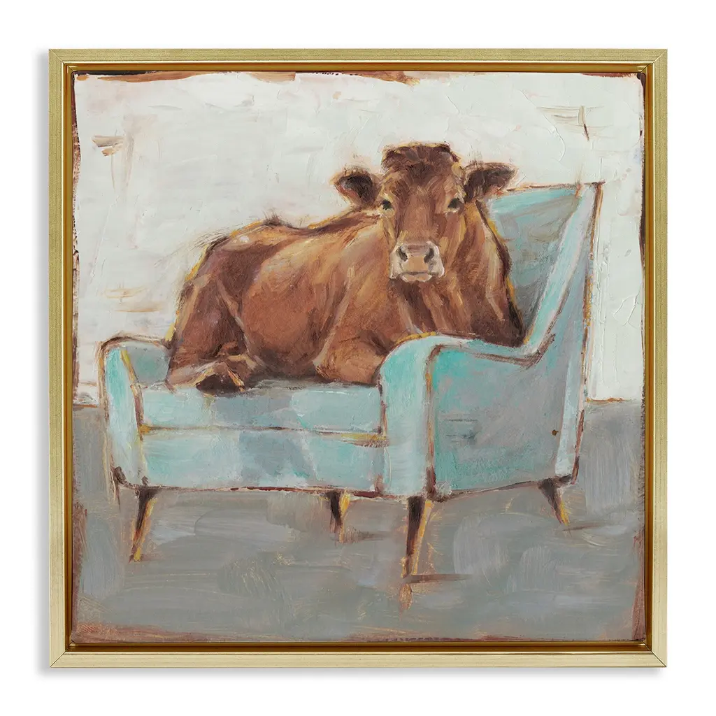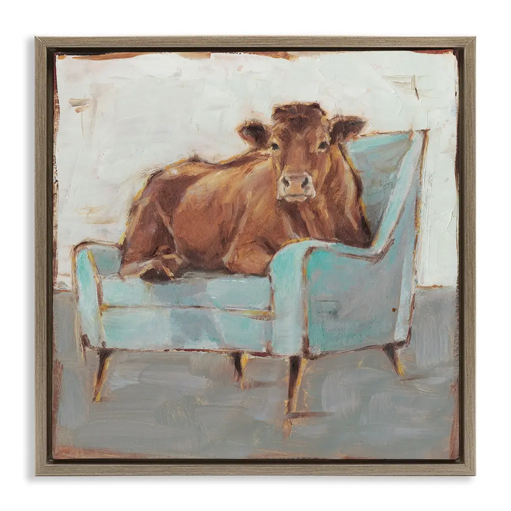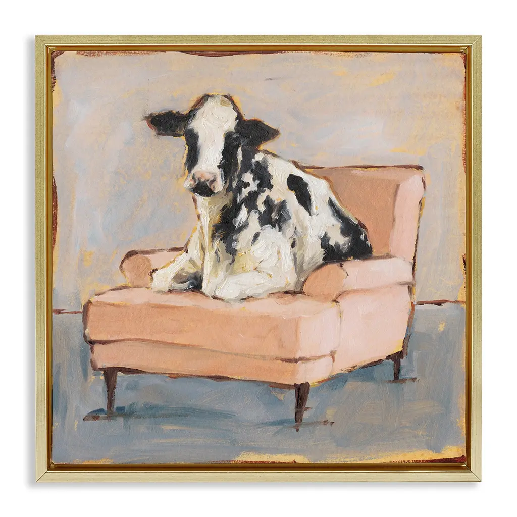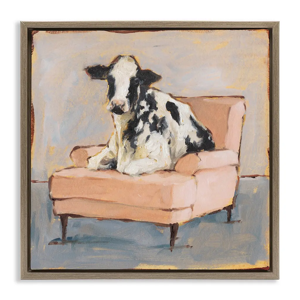 Elevate your home or office to the next level with Stupell Framed Floating Canvas Wall Art. Our premium hand-stretched canvas is mounted securely into a sturdy lightweight frame. The museum-style gap between the wrapped canvas and the box frame gives the illusion of floating artwork. Stupell Wall Art is made in the USA.Features: Dimensions: 18 x 1.7 x 18 Frame, 17 x 1.5 x 17 Canvas ArtFloating Frame Canvas Products are available in sizes 18"x18" and 25"x25". All Floating Frame Canvas Products have a 1.7" Depth.Wall Art is Ready to Hang with Hardware Free Hanging. No Installation required. For Easy Set Up Lean or Layer Artwork on Shelf or Against Wall. Artwork is Permently Fixed into the Frame.Our elevated 1.7" Thick Floating Frame is the perfect complement to our canvas style Wall Art. We use only the highest quality inks in house with industry leading printing solutions. Canvas is hand stretched over a durable wood foundation and then mounted securly into a Modern Box Frame. Made in the USA.Artwork Relates To: Animal, Farm, Country, Cow, Couch, Farmhouse, CountryDesign by Ethan Harper