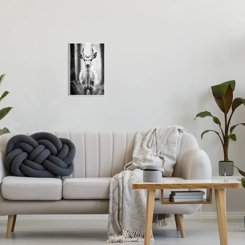Our wall plaques start as high-quality lithograph prints mounted on durable 0.5-inch thick MDF wood. Each piece is hand finished and comes with a fresh layer of white foil on the sides to give it a crisp, clean look. Plaques arrive ready to hang without installation and come with removable plastic corners to keep them from damage in transit. Wall Art is made in the USA.Features: Dimensions: 10 x 0.5 x 15 InchesWall Plaque Sizes Include Standard: 10 x 0.5 x 15 Oversized: 13 x 0.5 x 19Wall Art is Ready to Hang with Hardware Free Hanging. No installation required. For Easy Set Up Lean or Layer Artwork on Shelf or Against Wall.All of our wall plaques start off as high quality lithograph prints that are then mounted on durable 0.5 inch thick MDF wood. Each piece is hand finished and comes with a fresh layer of foil on the sides to give it a crisp clean look. Made In USA.Artwork Relates To: Animal, Deer, Mammal, Wildlife, Elk, Antler, Fawn, MonochromeDesign by Ray Powers