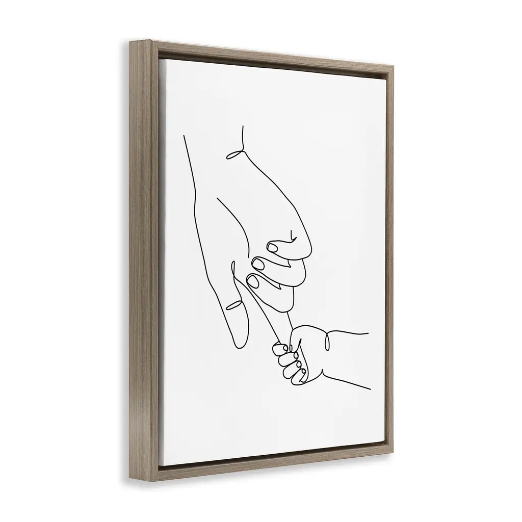 Elevate your home or office to the next level with Stupell Framed Floating Canvas Wall Art. Our premium hand-stretched canvas is mounted securely into a sturdy lightweight frame. The museum-style gap between the wrapped canvas and the box frame gives the illusion of floating artwork. Stupell Wall Art is made in the USA.Features: Dimensions: 17 x 1.7 x 21 Frame, 16 x 1.5 x 20 Canvas ArtFloating Frame Canvas Products are available in sizes 17"x21" and 25"x31". All Floating Frame Canvas Products have a 1.7" Depth.Wall Art is Ready to Hang with Hardware Free Hanging. No Installation required. For Easy Set Up Lean or Layer Artwork on Shelf or Against Wall. Artwork is Permently Fixed into the Frame.Our elevated 1.7" Thick Floating Frame is the perfect complement to our canvas style Wall Art. We use only the highest quality inks in house with industry leading printing solutions. Canvas is hand stretched over a durable wood foundation and then mounted securly into a Modern Box Frame. Made in the USA.Artwork Relates To: People, Parenting, Child, Parent, Hands, Minimal, FamilyDesign by JJ Design House LLC