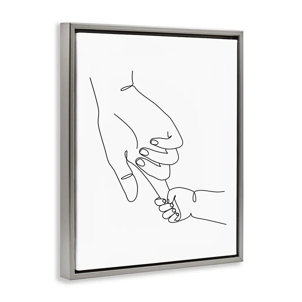 Elevate your home or office to the next level with Stupell Framed Floating Canvas Wall Art. Our premium hand-stretched canvas is mounted securely into a sturdy lightweight frame. The museum-style gap between the wrapped canvas and the box frame gives the illusion of floating artwork. Stupell Wall Art is made in the USA.Features: Dimensions: 17 x 1.7 x 21 Frame, 16 x 1.5 x 20 Canvas ArtFloating Frame Canvas Products are available in sizes 17"x21" and 25"x31". All Floating Frame Canvas Products have a 1.7" Depth.Wall Art is Ready to Hang with Hardware Free Hanging. No Installation required. For Easy Set Up Lean or Layer Artwork on Shelf or Against Wall. Artwork is Permently Fixed into the Frame.Our elevated 1.7" Thick Floating Frame is the perfect complement to our canvas style Wall Art. We use only the highest quality inks in house with industry leading printing solutions. Canvas is hand stretched over a durable wood foundation and then mounted securly into a Modern Box Frame. Made in the USA.Artwork Relates To: People, Parenting, Child, Parent, Hands, Minimal, FamilyDesign by JJ Design House LLC