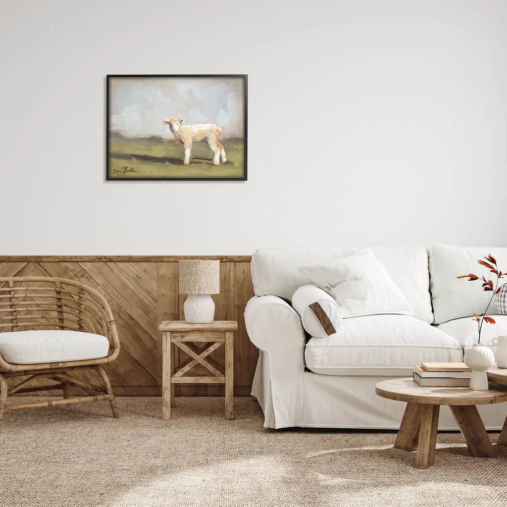 Our Framed Giclee Wall Art adds a touch of class to any space in your home or office. Frames are available in three alluring styles: black, gray farmhouse and white. Our textured artwork will add more depth and dimension to any space. Each piece is mounted with a 1.5 inch thick wood grain frame that is ready to hang! Looking for a statement piece? We have oversized artwork available.Features: Dimensions: 14 x 1.5 x 11 FramedFramed Giclee Sizes Include Standard: 14 x 1.5 x 11 Large: 20 x 1.5 x 16 Oversized: 30 x 1.5 x 24Wall Art is Ready to Hang - No Installation or Hardware Needed. For Easy Set Up Lean or Layer Artwork on Shelf or Against Wall.Our giclée prints are carefully mounted on a durable MDF backing, and then perfectly finished in a 1.5 inch thick woodgrain frame. Mounted frame colors include black, gray farmhouse and white. Made In USA.Artwork Relates To: Sheep, Cattle, Mammal, Animal, Lamb, Outdoors, Countryside, RuralDesign by Sara Baker