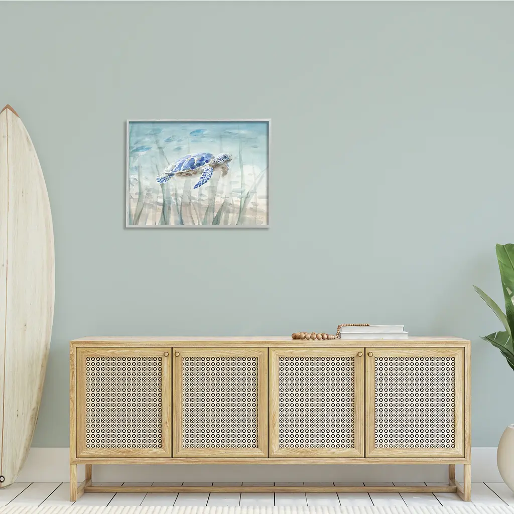 Stupell Baby Sea Turtle Blue Speckled Aquatic Animal Ocean Framed Wall Art - 30 X 24 - Grey