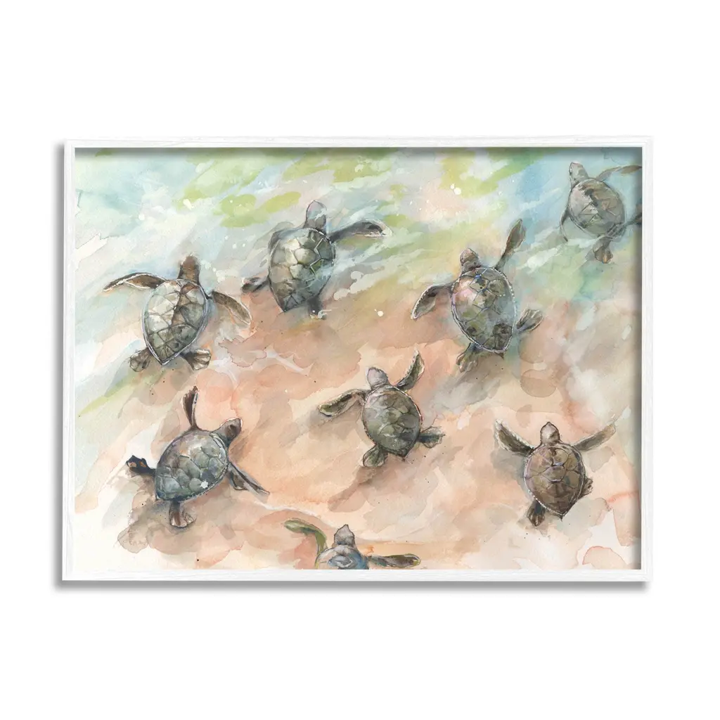 Stupell Baby Sea Turtles Swimming Shore Framed Giclee Art By Diannart - 30 X 24 - Black