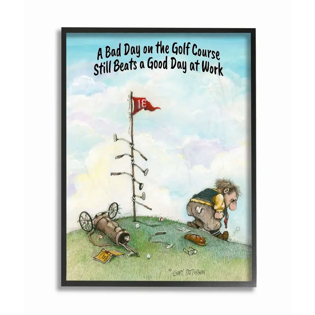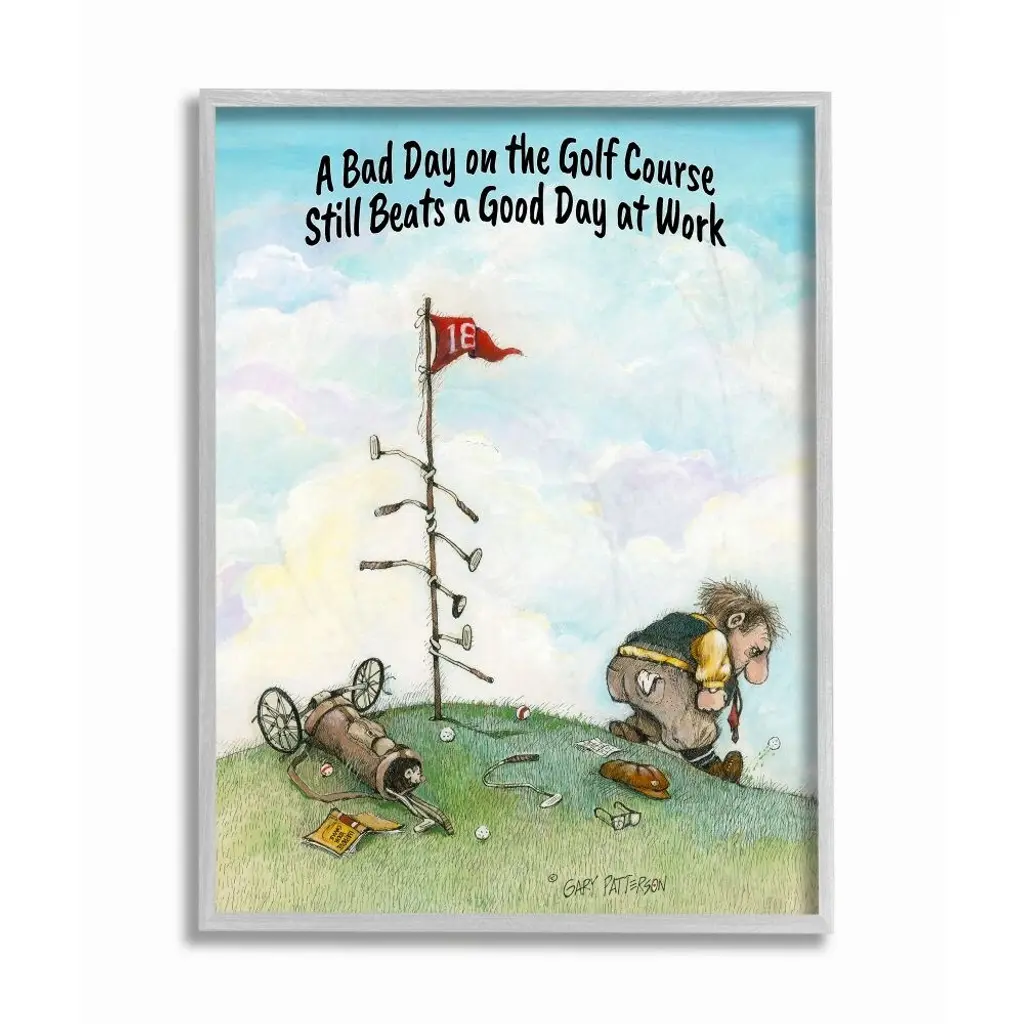 Stupell Bad Golf Beats Good Work Funny Cartoon Golf Sports Design Framed Wall Art, Design By Artist Gary Patterson - 11 X 14 - Grey