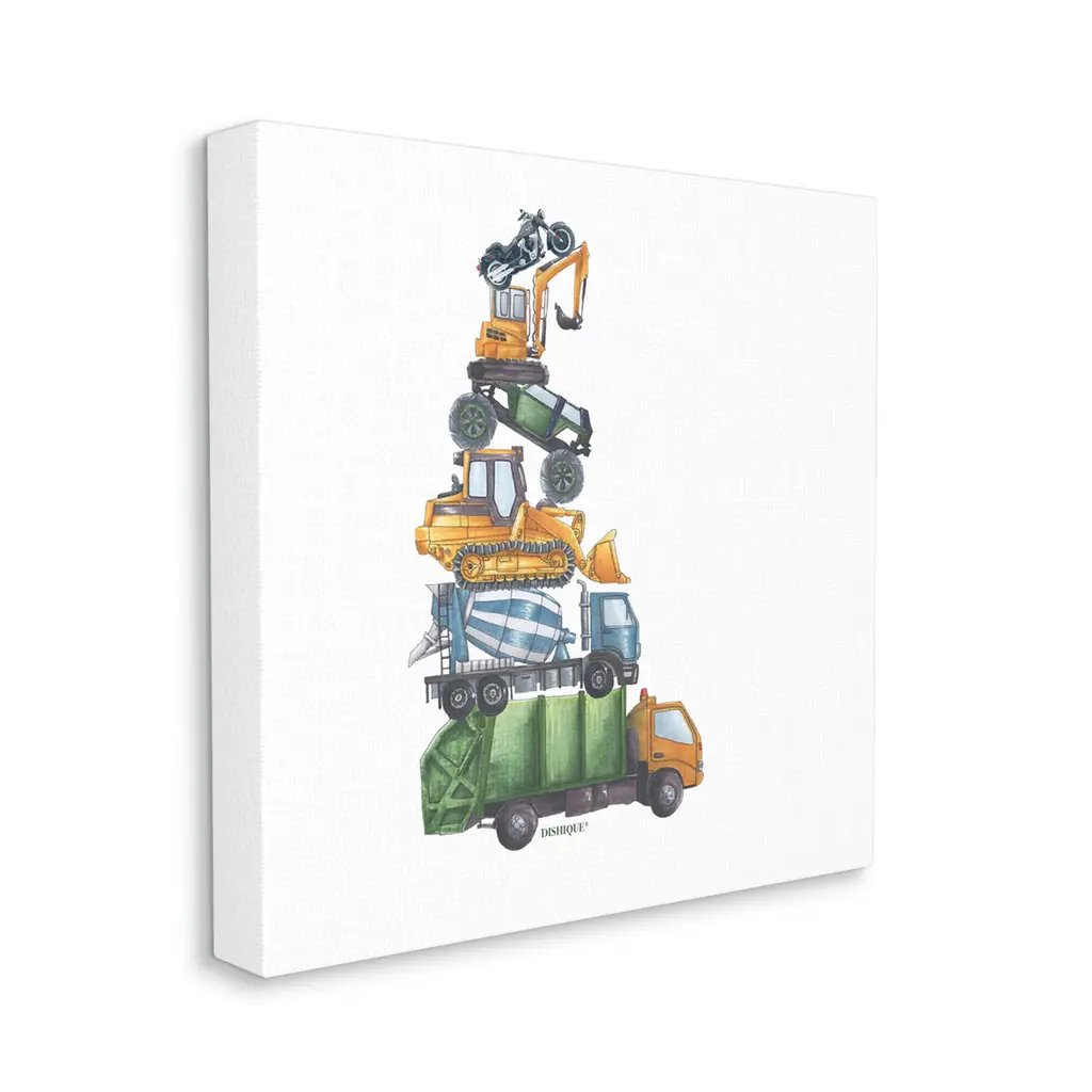 Stupell Balancing Trucks Construction Vehicles Stacked Automobiles Canvas Wall Art, Design By Dishique - 24 X 24