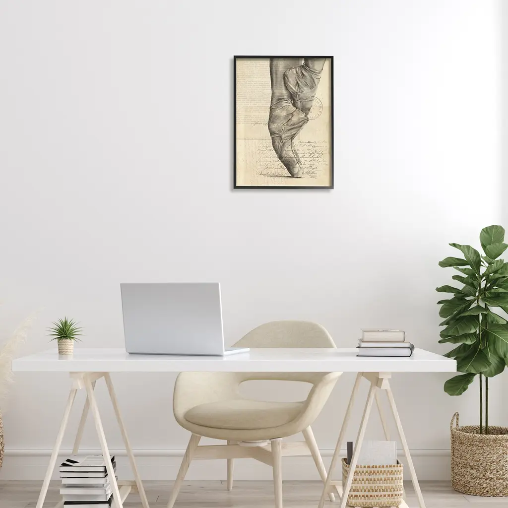 Stupell Ballerina Ballet Slippers Monochrome Vintage Text Collage Framed Wall Art - Brown - 16 X 20 - Black
