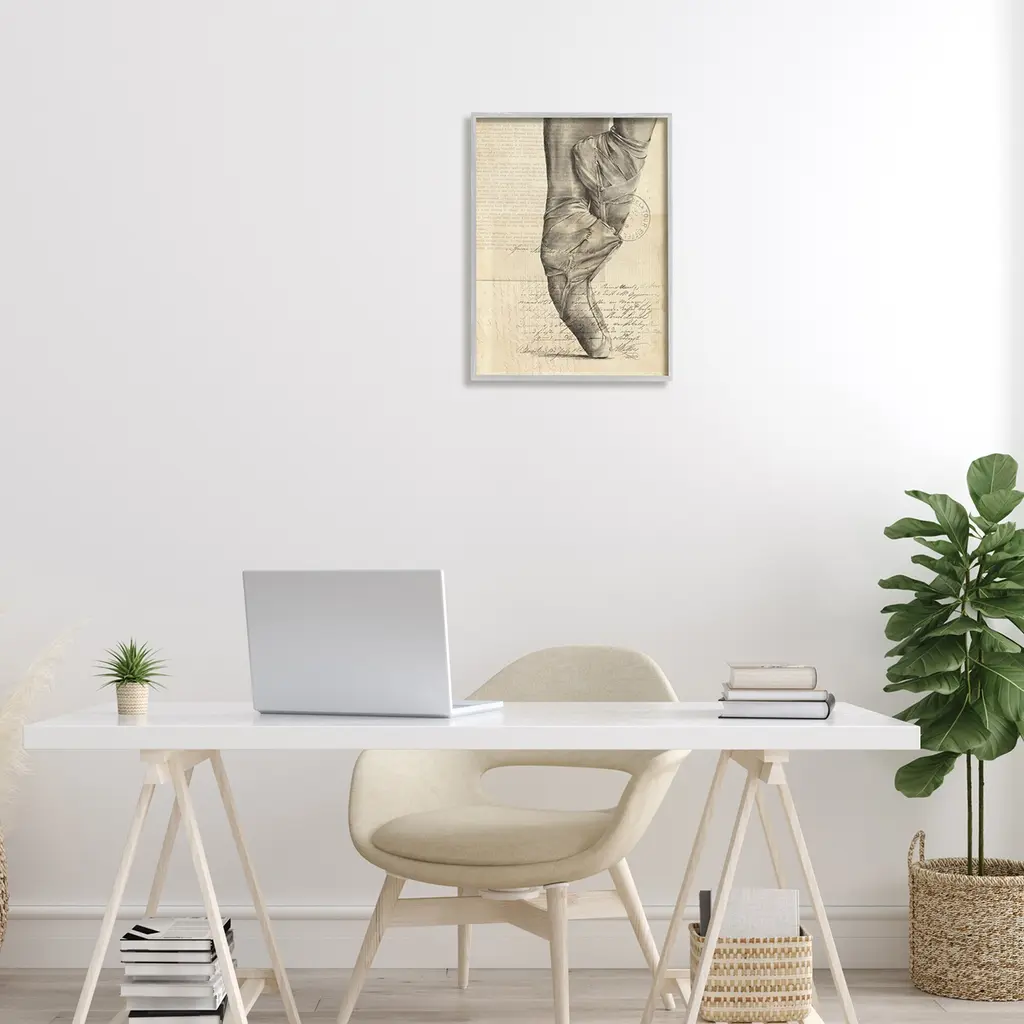 Stupell Ballerina Ballet Slippers Monochrome Vintage Text Collage Framed Wall Art - Brown - 16 X 20 - Grey