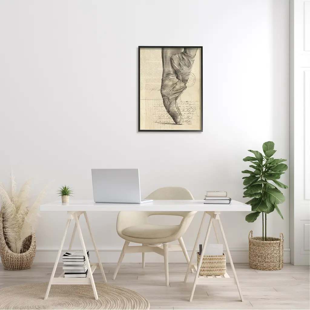 Stupell Ballerina Ballet Slippers Monochrome Vintage Text Collage Framed Wall Art - Brown - 24 X 30 - Black