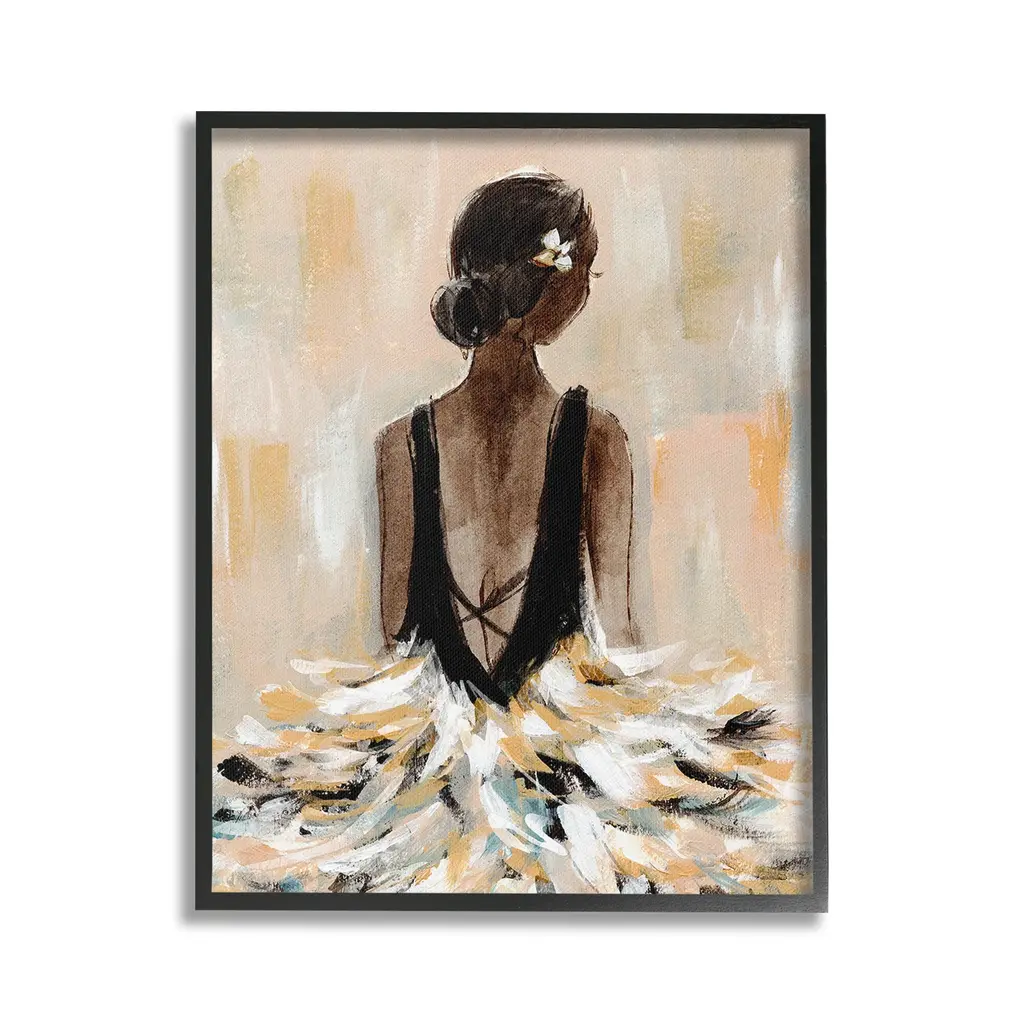 Elevate your home or office to the next level with Stupell Framed Floating Canvas Wall Art. Our premium hand-stretched canvas is mounted securely into a sturdy lightweight frame. The museum-style gap between the wrapped canvas and the box frame gives the illusion of floating artwork. Stupell Wall Art is made in the USA.Features: Dimensions: 17 x 1.7 x 21 Frame, 16 x 1.5 x 20 Canvas ArtFloating Frame Canvas Products are available in sizes 17"x21" and 25"x31". All Floating Frame Canvas Products have a 1.7" Depth.Wall Art is Ready to Hang with Hardware Free Hanging. No Installation required. For Easy Set Up Lean or Layer Artwork on Shelf or Against Wall. Artwork is Permently Fixed into the Frame.Our elevated 1.7" Thick Floating Frame is the perfect complement to our canvas style Wall Art. We use only the highest quality inks in house with industry leading printing solutions. Canvas is hand stretched over a durable wood foundation and then mounted securly into a Modern Box Frame. Made in the USA.Artwork Relates To: Modern, Back, Person, Female, Woman, Fashion, Dress, Gown, Dancer, Ballerina, AbstractDesign by Annie Warren