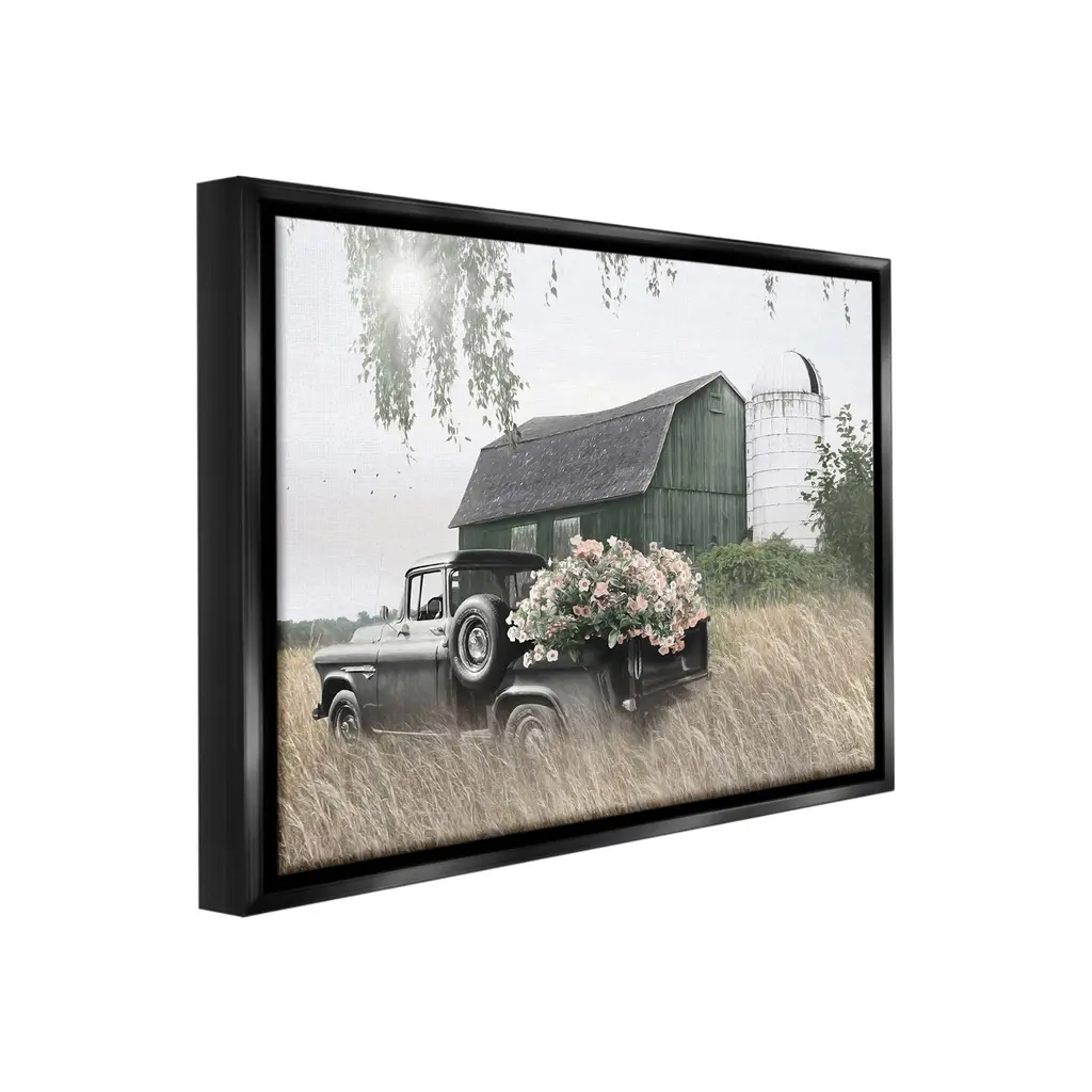Elevate your home or office to the next level with Stupell Framed Floating Canvas Wall Art. Our premium hand-stretched canvas is mounted securely into a sturdy lightweight frame. The museum-style gap between the wrapped canvas and the box frame gives the illusion of floating artwork. Stupell Wall Art is made in the USA.Features: Dimensions: 21 x 1.7 x 17 Frame, 20 x 1.5 x 16 Canvas ArtFloating Frame Canvas Products are available in sizes 21"x17" and 31"x25". All Floating Frame Canvas Products have a 1.7" Depth.Wall Art is Ready to Hang with Hardware Free Hanging. No Installation required. For Easy Set Up Lean or Layer Artwork on Shelf or Against Wall. Artwork is Permently Fixed into the Frame.Our elevated 1.7" Thick Floating Frame is the perfect complement to our canvas style Wall Art. We use only the highest quality inks in house with industry leading printing solutions. Canvas is hand stretched over a durable wood foundation and then mounted securly into a Modern Box Frame. Made in the USA.Artwork Relates To: Nature, Countryside, Building, Hut, Rural, Barn, Farm, Shack, House, Landscape, Truck, Pickup, Flower, SiloDesign by Lori Deiter