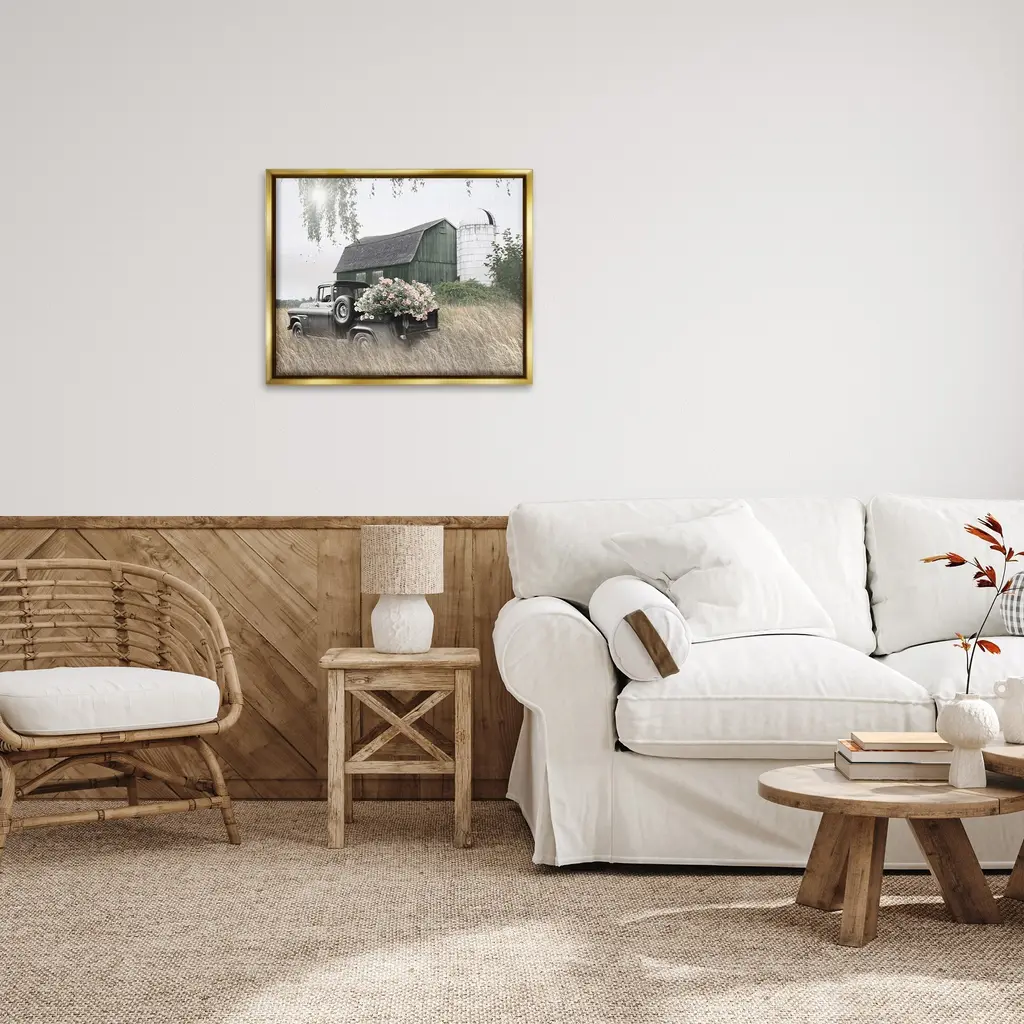 Stupell Barn & Truck With Florals Framed Floater Canvas Wall Art Design By Lori Deiter - 31 X 25 - Gold